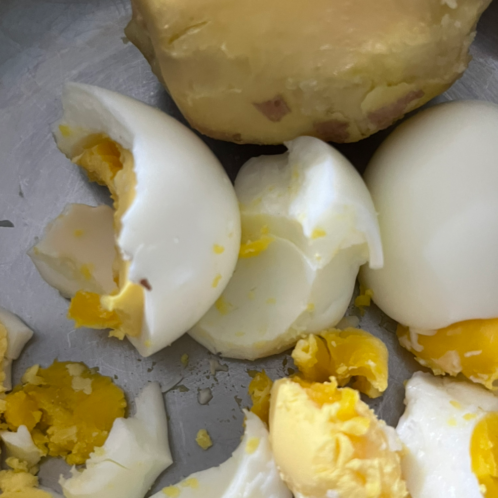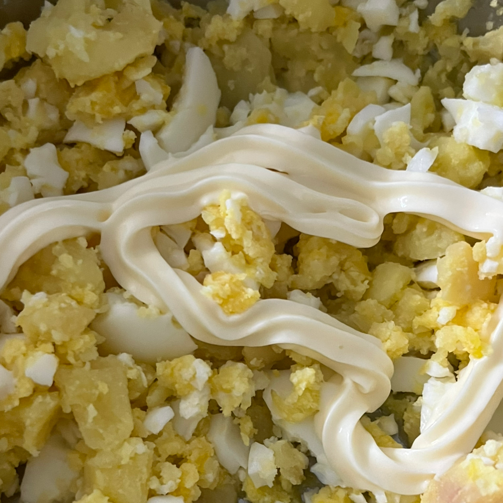 삶은 감자 껍질을 제거한 뒤 으깨준다.