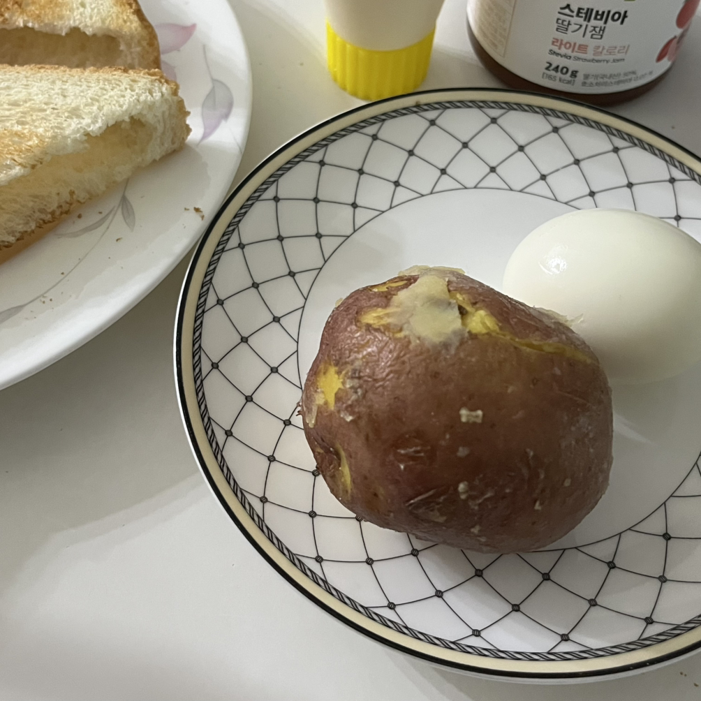 식빵, 감자, 계란, 스테비아, 딸기잼, 마요네즈