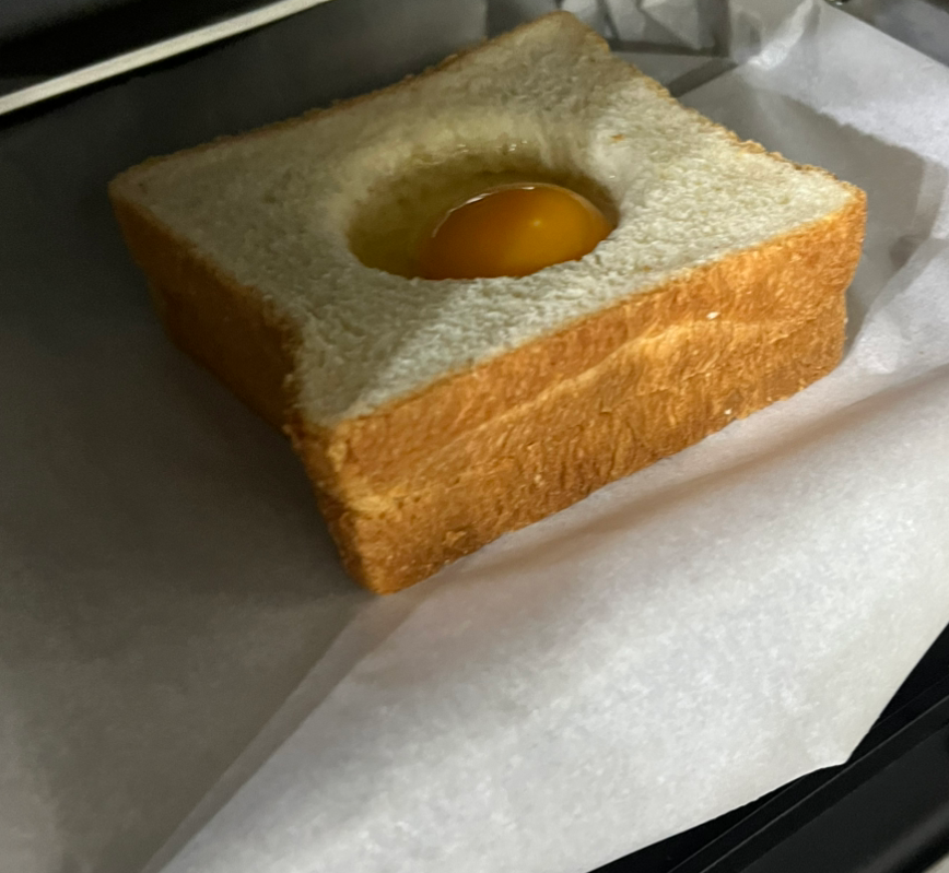 식빵 속 계란이 생각보다 안 익는다. 빵 윗부분을 빼고 계란을 익힌 뒤 뚜껑을 얹어 구워주는 것을 추천한다.