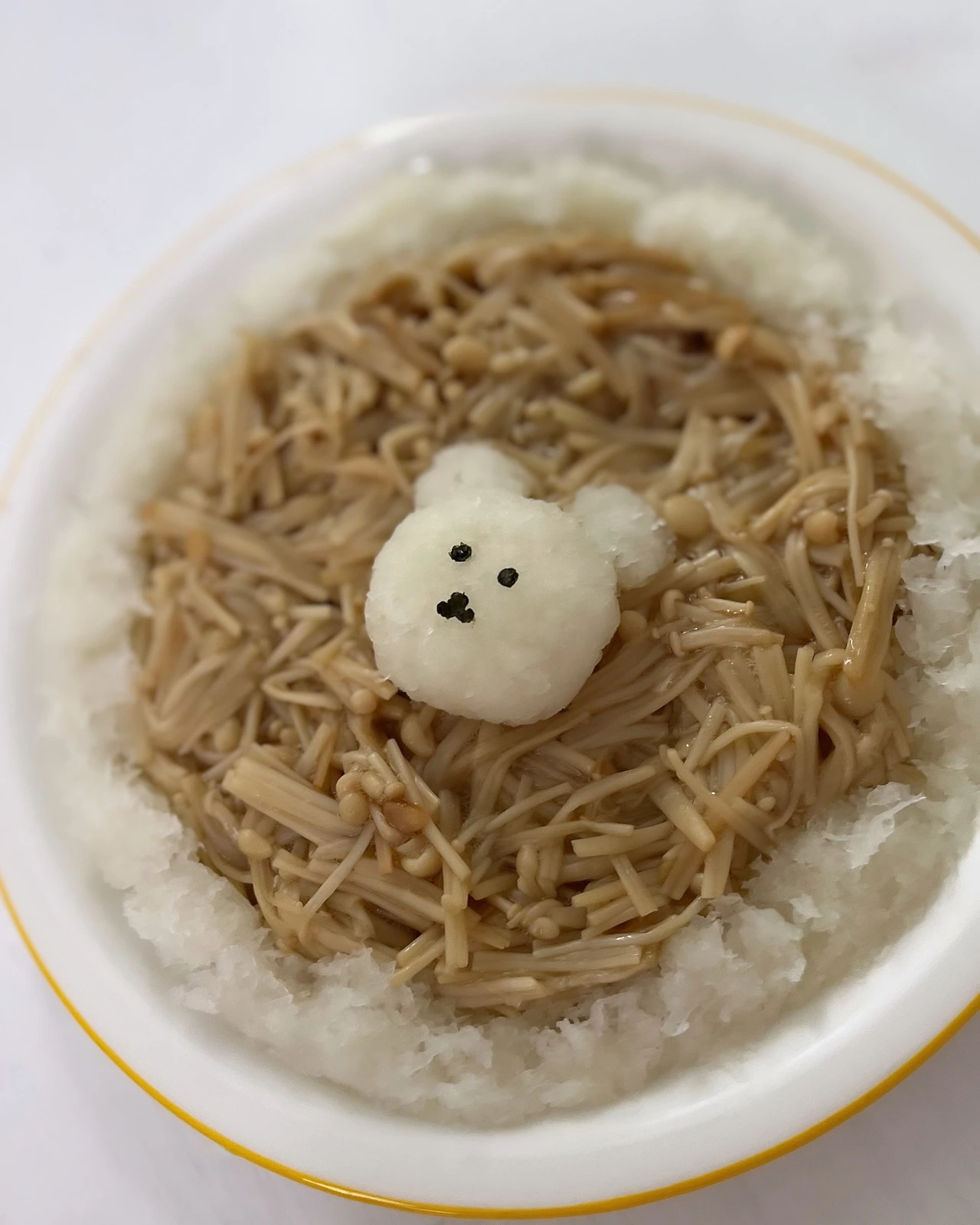 팽이버섯을 간장에 절이는 일식 요리다. 애니에서와 같이 현실에서도 '절약'을 상징하는 반찬인 듯하다.