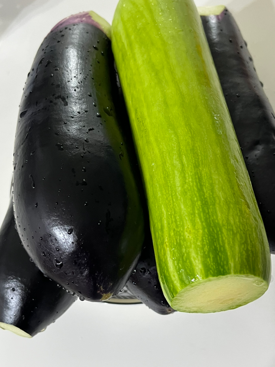 가지, 애호박을 비슷한 두께로 길게 썰어준다.