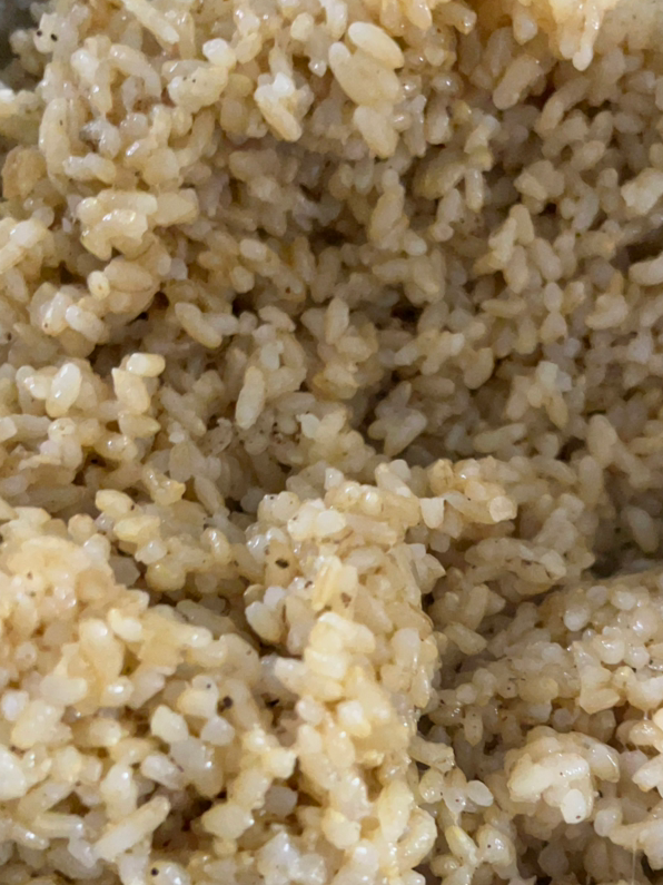 현미밥에 소금, 설탕, 후추, 진간장을 넣어 양념해 준다.