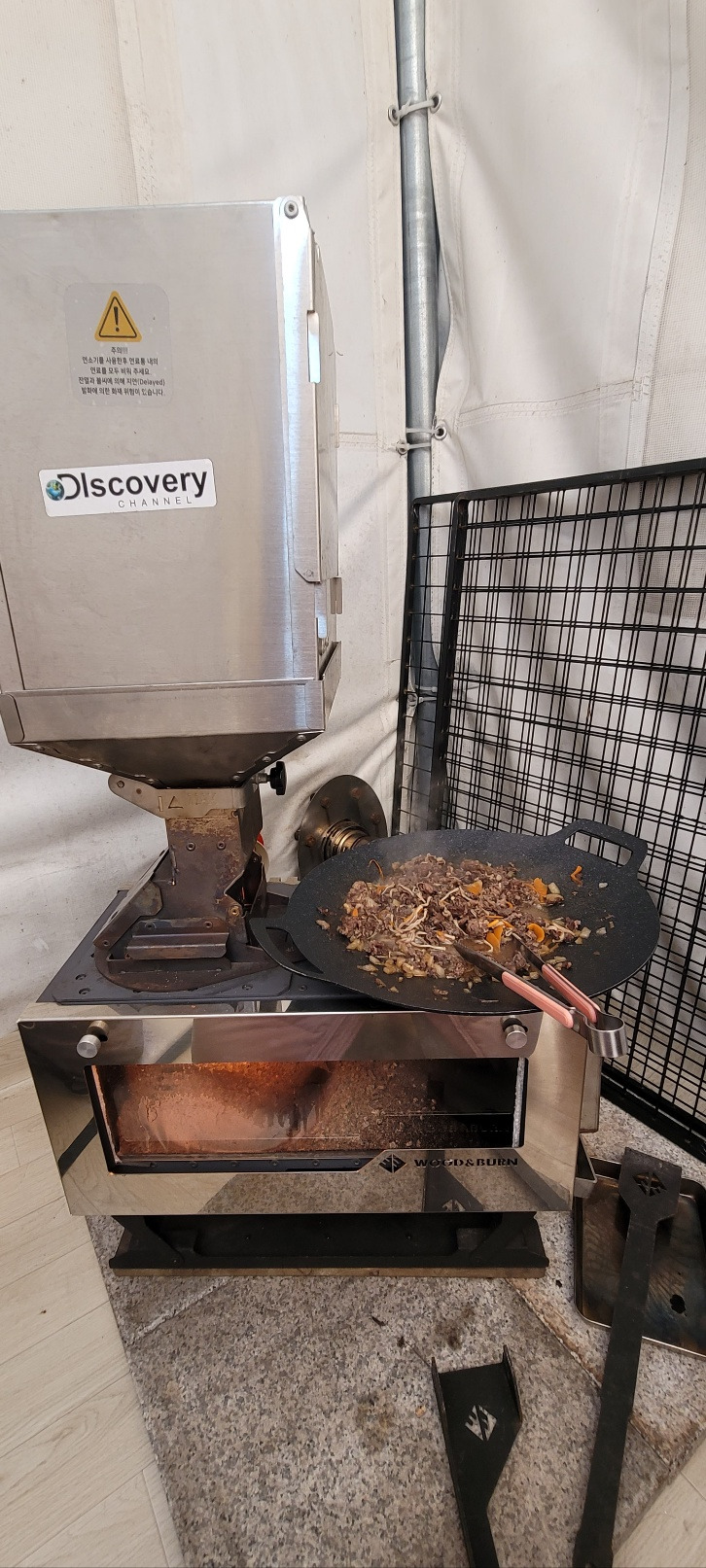난로 위의 음식은 캠핑장에서만 느낄 수 있는 아날로그 감성을 자극한다.