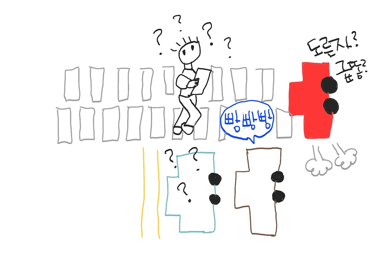 그나저나 보행신호도 무시하고 급하게 지나갔던 빨간색 경차는 급똥이었을까. 아무리 급똥이어도 똥보다는 사람이 우선이라는 걸 인식하고 도로로 나와주시기를.