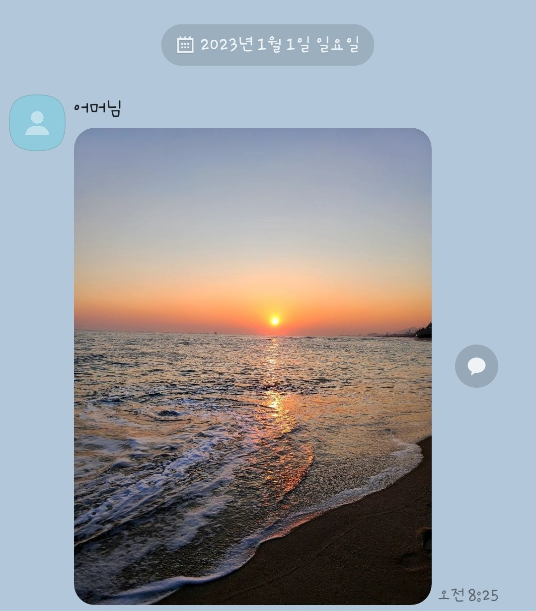 새해 첫날 아침에 시어머니께서 카톡을 보내셨다. 아무런 멘트도 없이 해가 떠오르는 사진 한 장.