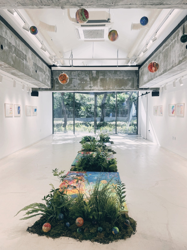 미술은 아름답고 화려한 것이 멋있는 줄 알았던 철없던 시절을 지나 결혼과 출산의 과정을 거치며 차세대와 함께 할 수 있는 예술 행위를 생각해 오던 저희가 과거 대화로만 나누어 오던 미술 프로젝트를 현실화할 수 있는 기회여서 정말 뜻깊은 여정이었습니다. 전시장 입구에 액자 형태로 설치된 포스터도 양천구에서 오랜 시간을 함께 성장해 온 스튜디오 니누(임누리 디자이너)의 작품입니다. 어린 시절 동네 공원의 초록빛을 마음속 깊이 기억하고 있었던 임누리 디자이너가 고향을 생각하며 창작한 이미지입니다. 이제야 알고 보니 지역 내의 사립고등학교를 졸업한 저와 안남진 작가님 그리고 임누리 디자이너의 고등학교 담임 선생님이 같았습니다. 나이 차이가 있어서 같이 학교를 다니지 않았지만 동일한 담임 선생님의 지도를 받았다는 것이 신기했습니다. 참고로 저희들의 담임선생님은 한국의 니콜라스 케이지로 불리시던 멋진 분이셨습니다. 선생님께서 저희 셋이 시간이 지나 이렇게 한 자리에 모여 프로젝트를 한 것을 아시면 너무 기뻐하실 것 같습니다.