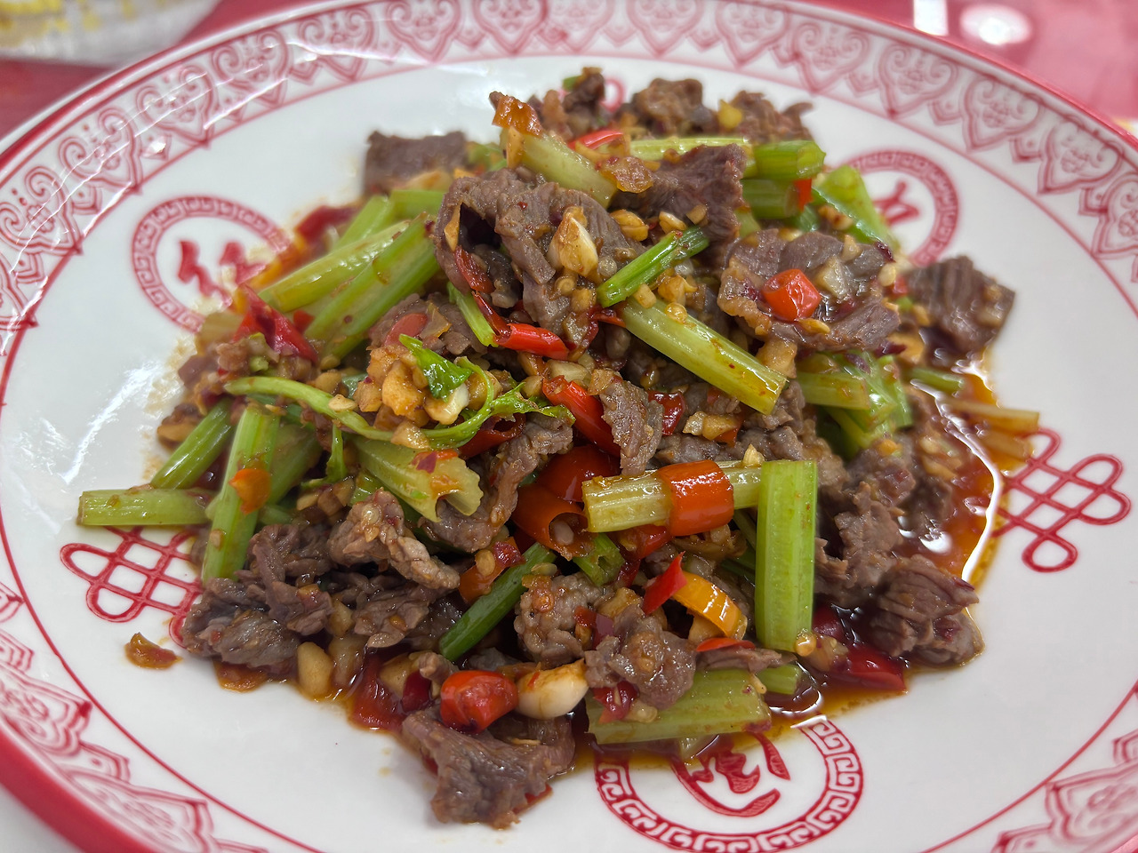 아무튼 강력한 허기가 뇌를 지배했던 터라 눈에 들어오는(읽을 수 있는) 요리를 대충 주문했습니다. 그랬더니 소고기와 공심채와 고추와 마늘을 넣어 볶은 요리 하나, 그리고 우리네 영원한 밑반찬 감자채 볶음이 나왔습니다. 향긋한 매운 내음이 이미 흘러넘치고도 남던 식욕을 한층 더 폭발시키는 느낌이었습니다. 맛 또한 상당했습니다. 맵기는 적당했고 염도 또한 흰밥과 밸런스가 완벽했으니까요. 그렇게 도파민의 분출과 함께 열심히 저작 활동에 매진하고 있던 어느 순간, 갑자기 지옥의 매운맛이 득달같이 덮쳐오는 것이 아니겠습니까.