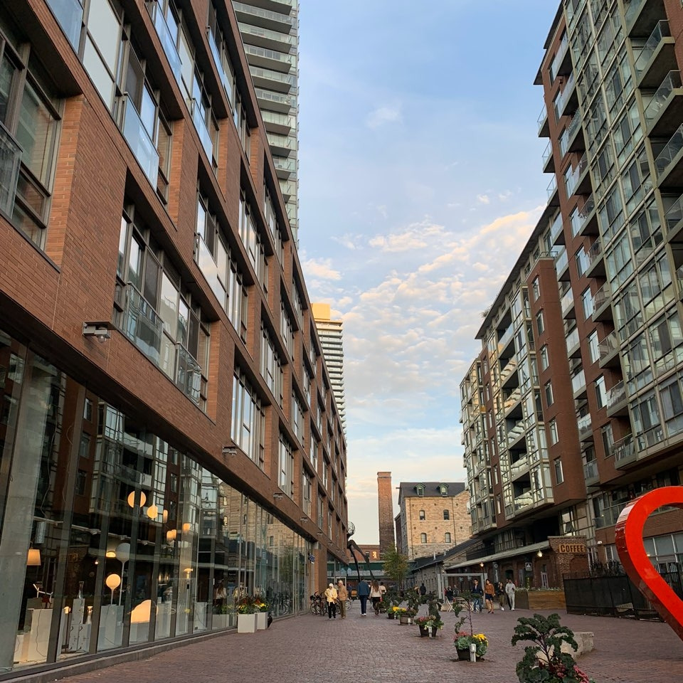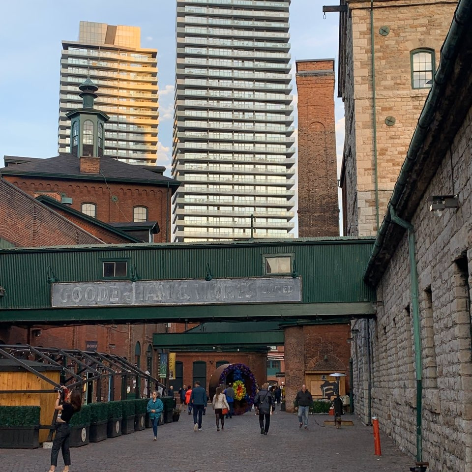 커피를 마신 후 더 맑게 개인 하늘을 즐기며 도심 탐방을 이어갔다. 다음 장소는 토론토 디스틸러리 디스트릭트. 옛날에 양조장이 있던 곳이라는데 현재 각종 갤러리, 아트샵, 레스토랑 등 구경거리가 많다. 깨끗하고 분위기가 잘 정돈되어 있어 젊은 예술가들의 감각을 느낄 수 있다. 우리도 이 곳에 위치한 멕시코 음식점에 가려했으나 어떤 단체손님들이 가게를 통째로 대관해서 아쉽게 발길을 돌려야 했다.