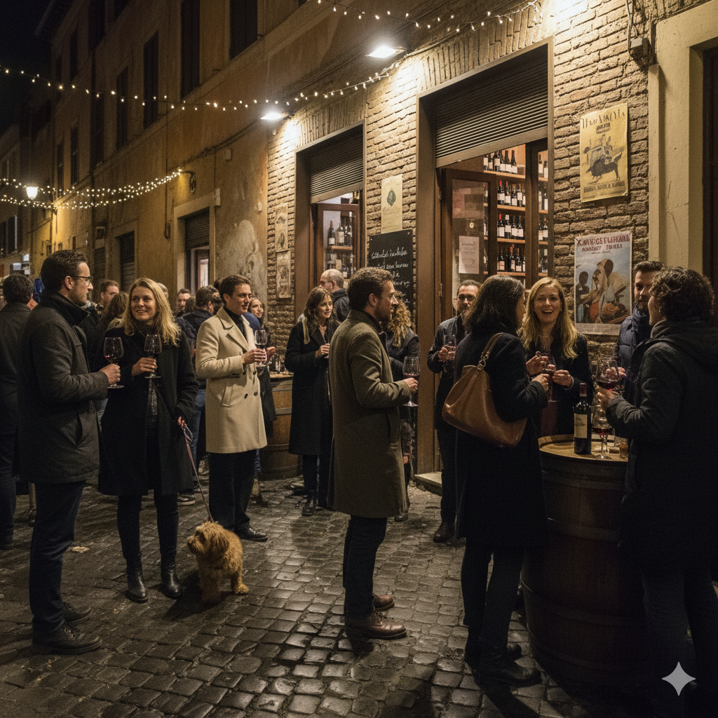 하지만 두 번째 도시인 로마는 달랐습니다. 밤에도 거리는 사람들로 가득했고, 늦게까지 문을 여는 가게들 덕분에 도시 전체가 활기를 띠고 있었습니다. 내가 머물던 에어비앤비 바로 앞에는 작은 와인바가 있었는데, 테이블은 없고 의자와 벤치만 놓여있었죠. 와인 종류도 많지 않았지만 모두가 글라스를 들고 편하게 서서 이야기를 나누는 모습이 무척 친근했습니다. 관광객이 많을 거라 생각했던 것과 달리, 그곳에는 퇴근 후 한 잔 하는 직장인들, 회사 동료와 함께 온 사람들, 심지어 강아지를 산책시키다 들른 사람들까지, 일상을 사는 로마 시민들의 모습이 가득했습니다. 나는 가식 없고 꾸밈없이, 그저 일상에서 와인을 즐기는 모습에 깊이 매료되었습니다.