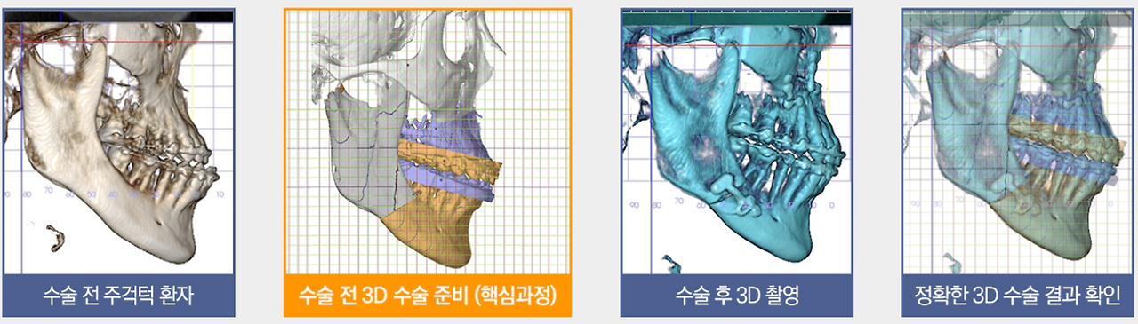 3D 시뮬레이션을 통해 수술 과정과 수술 후 결과를 미리 예측할 수 있게 되었기 때문에 과거부터 꾸준히 제기되어 왔던 양악수술의 오차 문제를 뛰어넘을 수 있게 된 것입니다.