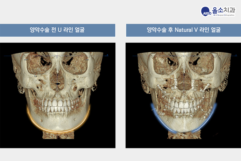 양악수술은 턱뼈를 바르게 교정하는 치료법으로 저작기능이나 발음과 같은 여러가지 기능적인 문제를 해결하면서 얼굴 부위 근육의 과성장으로 인한 돌출입, 주걱턱, 긴 얼굴, 또는 안면비대칭, 무턱과 같은 얼굴라인도 함께 심미적으로 개선할 수 있는 효과적인 방법으로 손꼽히고 있습니다.