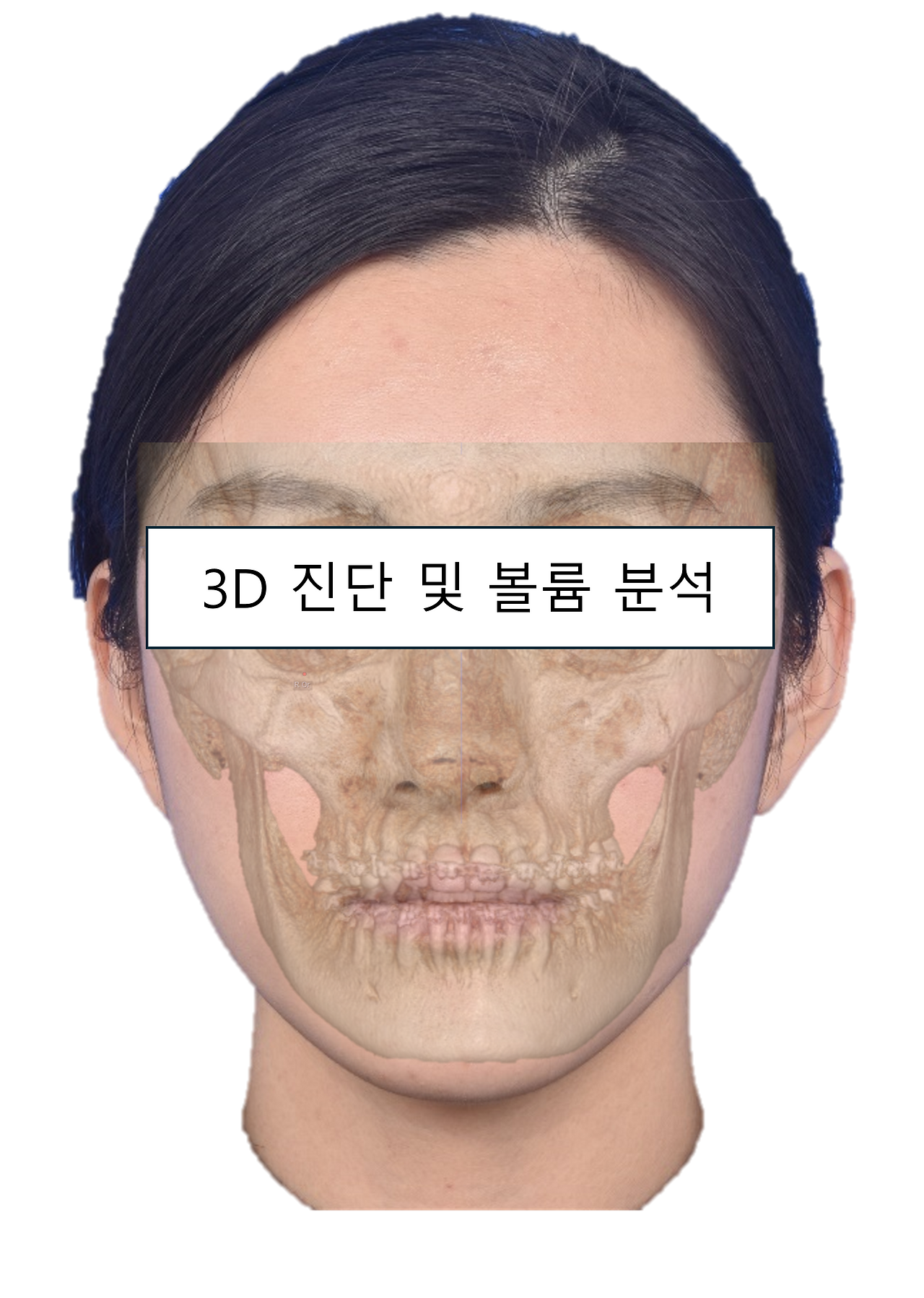 이는 뼈에 대한 3D 분석 뿐 아니라, 연조직에 대한 분석이 동시에 이루어져야 합니다. 뼈에 대한 분석은 3D Cehpalometry를 통해 가능하지만, 피부 연조직에 대한 분석은 아직은 정량적인 분석은 불가능하여 경험이 충분한 의사가 뼈에 대한 분석을 전제로 그간의 경험을 통해서 충분히 숙고하여야 합니다.