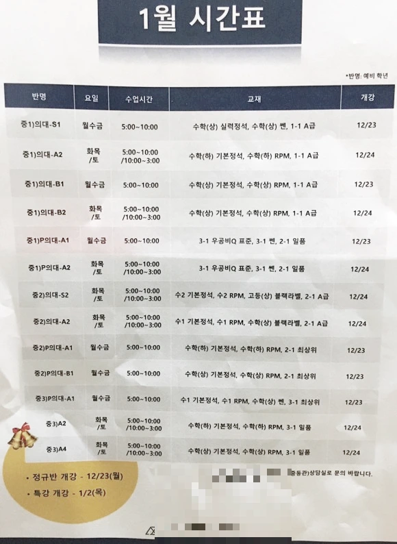 하교 후 아이가 혼자서 집에 있는 시간을 최소화하기 위해 매일 학원을 돌리기로 했는데(K학원은 보육기능도 크다), 아이 학원 스케줄링은 아이의 수준과 학원별/요일별 시간표, 동선 등 고려해야 할 변수가 많은 고차원 방정식이었다. 매일 운동을 한 군데 다녀와서 영어 또는 수학 학원에 가도록 스케줄을 짰는데, 머리에 쥐가 날 뻔했다. 듣자하니 대치동에는 아이 상황에 맞게 학원 스케줄링 해주고 매일 학원 등원과, 학원 사이에 비는 시간 관리 해주는 학원도 있다고 하던데, 엄마들의 니즈를 간파한 틈새시장이 아닌가 싶다. 여기는 대치동이 아니니, 알아서 스스로 하는 수밖에.