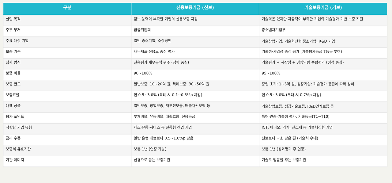 신용보증기금(신보)과 기술보증기금(기보)은 정부가 설립한 보증 전문기관이다. 이 기관들은 기업의 재무상태, 기술력, 성장 가능성을 평가해 보증서를 발급하고 은행은 그 보증서를 근거로 대출해 준다. 즉, 담보 대신 국가가 기업의 신용을 보증하는 구조다.