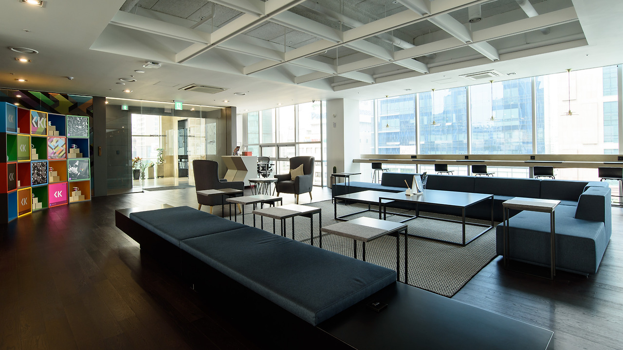 도착하자마자 지문 등록이 이뤄졌다. 지정석이 없는 자유석이기에 코너스톤 전층(5층~8층)을 전부 돌아다니며 마음에 드는 자리를 찾아다녔다. 6층 라운지 홀 창가 앞 바(bar) 자리에 앉다가, 그 옆 소파로 옮기고, 그다음 5층에 내려가 그 좋다는 책상과 의자에 앉아 업무를 보았다. 이렇게 돌아다니며 내가 앉고 싶은 자리를 선택할 수 있다는 점이 좋았다.