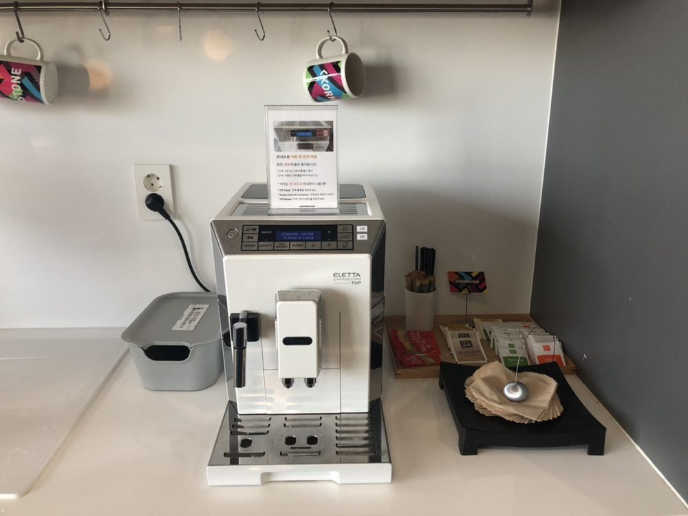 차, 커피, 음료는 물론 무제한이다. 커피는 안 마셔봐서 모르지만 고급 원두를 사용한다고 한다. 커피 맛에 까다로운 입주자분들도 만족시킨 원두라 한다.