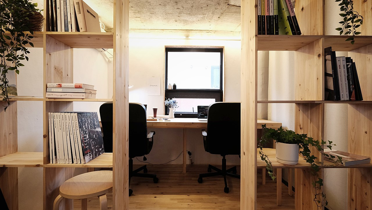 '서림길 독서실'에는 넓은 책상과 의자 2개가 있고, 다른 공간에는 없는 탁상용 스탠드가 있다. 그래서인지 집중하기에 좋다. 쉐어어스 공간 디자이너분께서 독서실이 가장 인기 있다고 귀띔해줬다.