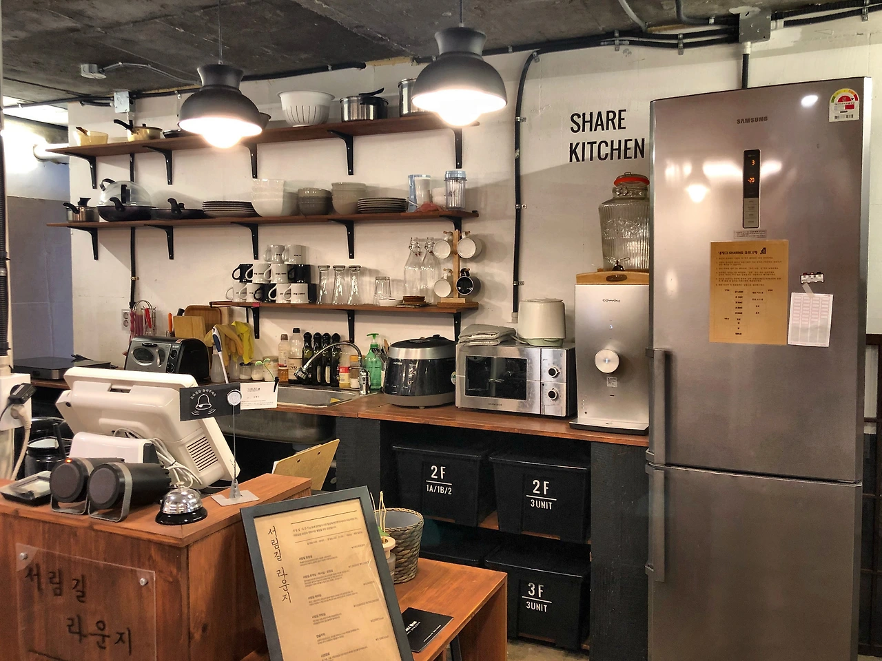 서림길 라운지에는 카페에는 없는 '서림길 키친'있다. 정수기, 전자레인지, 토스트기를 사용할 수 있다. 외부 음식을 이곳에서 데워먹을 수도 있고, 매니저와 상의 후 부엌에서 요리도 할 수 있다.