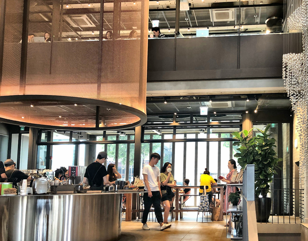 맥심플랜트 입구를 열고 들어가면, 커피 판매대와 함께 시원한 창문과 식물들이 눈에 들어옵니다. 조금 둘러보니 곳곳에 초록 식물들이 놓여있더라고요.