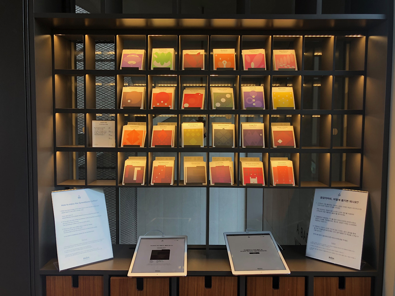 3층에 가면 태블릿 PC가 놓여 있는 테이블이 있습니다. 맥심만의 로스팅 프로파일이라고 하는데, 어쨌든 이 태블릿은 저와 가장 어울리는, 가장 좋아할 만한 원두를 추천해줍니다. 어떻게요? 태블릿은 저에게 로스팅, 산미, 좋아하는 향을 선택하게 하고, 이에 따라 원두를 추천해줍니다. 추천받은 원두에 해당하는 카드를 들고, 옆에 있는 매대로 가서 주문을 합니다. 물론 이 원두는 맥심 플랜트 1층에서 판매하고 있습니다.