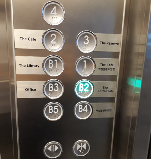우선, 맥심플랜트의 건물은 지하 4층~지상 3층으로 구성되어 있습니다. 지하 3층은 사무실이고, 지하 4층은 주차장 및 건물 뒷길로 이어지는 곳이라 소비자들이 체험할 수 있는 공간은 지하 2층~지상 3층입니다. 맥심플랜트에 가실 예정이면 3층부터 가실 것을 추천합니다. 저는 아무것도 모르고 1층에서 음료를 주문하고 3층에 올라갔는데 후회했습니다. 3층에서 주문할 수 있는 커피 종류가 훨씬 많고, '공감각 커피'라는 것을 체험할 수 있습니다.