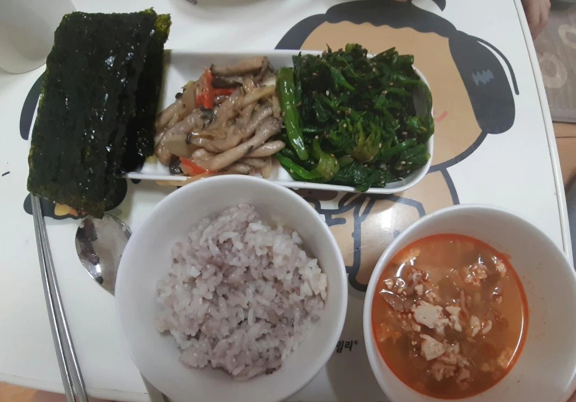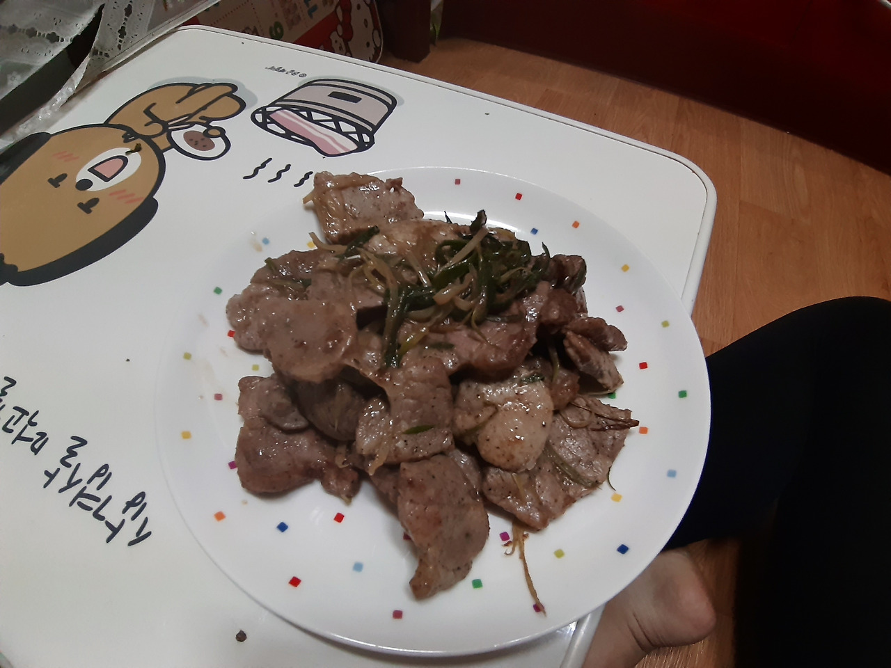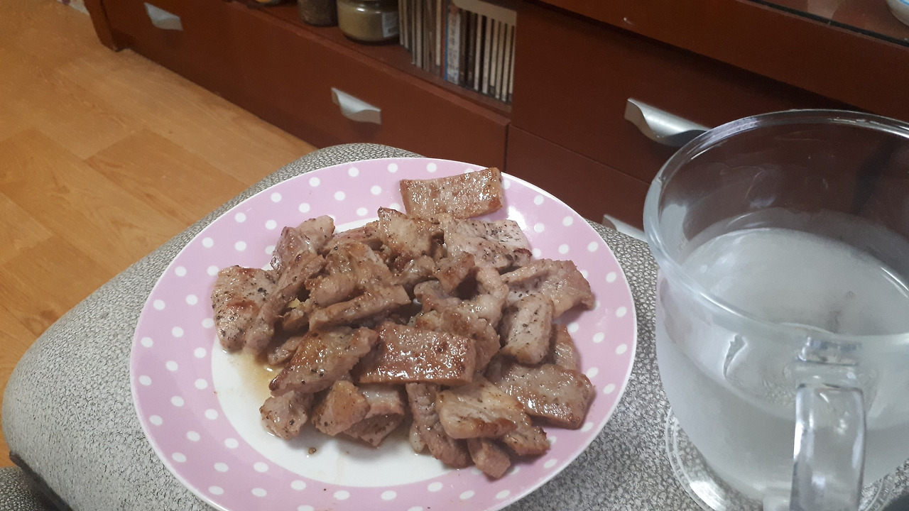 음, 한식 밥상을 눈 뜨자마자 먹게 되었습니다. 점점 무기력해져서 저탄고지식 식사를 차릴 기운도 없었어요. 이렇게 악순환이 시작되는 걸까요. 그래도 저녁은 고기를 먹었네요. 사실 고탄고지는 살이 찝니다. 그렇지만 인슐린 스파이크로 무기력한 와중에 고기를 구웠다는 것에 의의를 둬야 할 것 같네요.