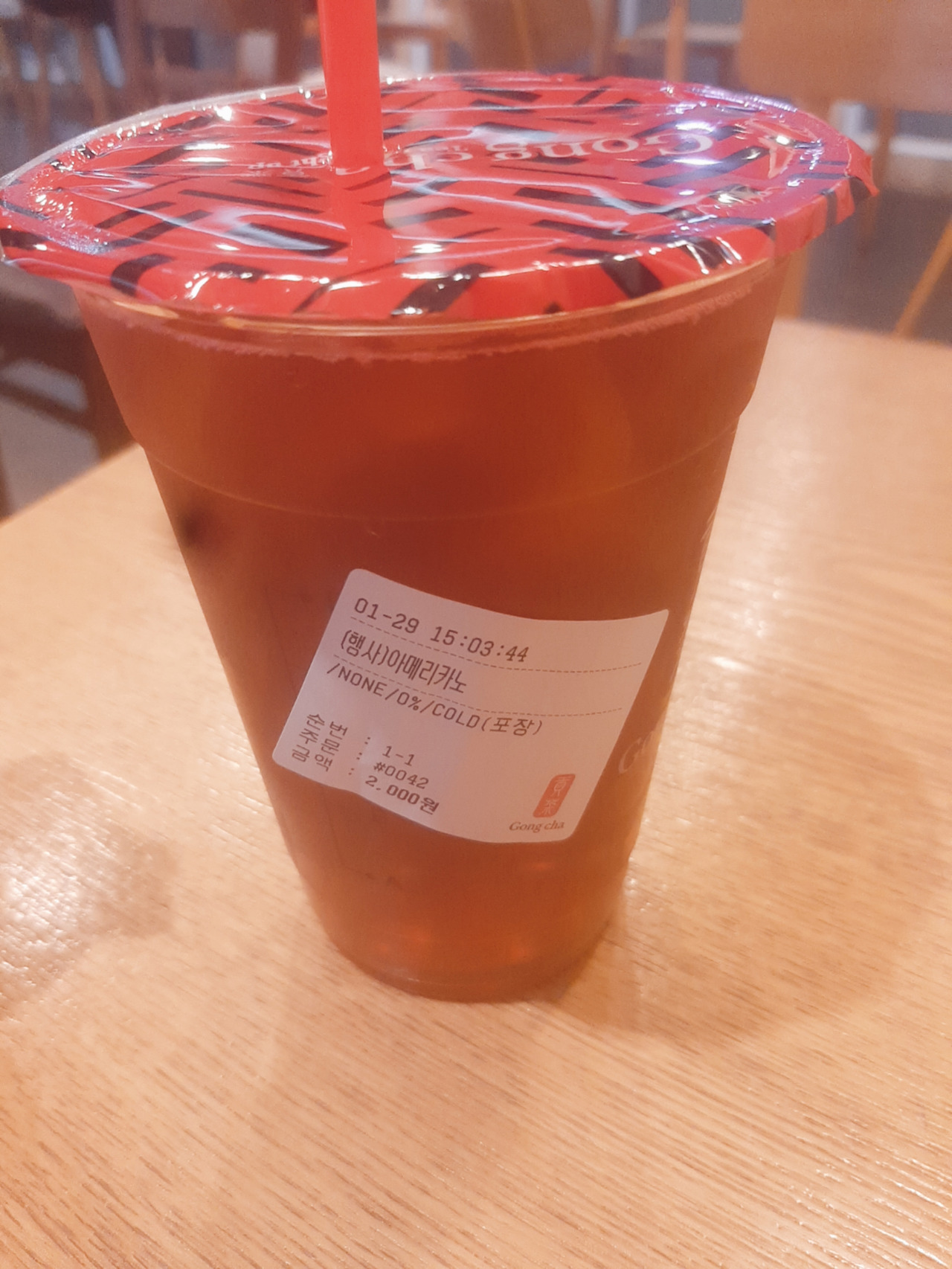 이 날이 운동 처음 한 날인데요. 헬스장 가서 유산소 무산소 기구 한 번씩 써보고 스트레칭하고 조금 쉬었더니 두 시간을 훌쩍 넘겨서 운동했어요. 집 가다가 근육통 때문에 다리가 아파서 공차에서 아메리카노 먹으면서 잠깐 쉬었어요.