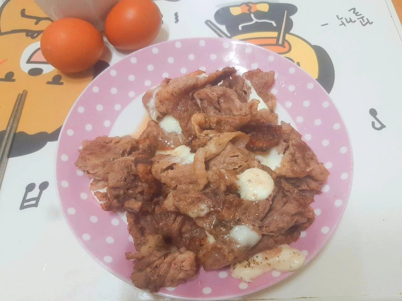 치즈 우삼겹 구이와 계란 한 개.