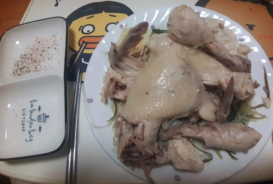 이 날, 새로 장만한 히말라야 핑크 소금이 빛을 발하는 순간이었습니다. 보통 소금을 음식에 간을 하기 위해서 쓰고 찍어먹지는 않았는데 이 소금이 백숙 먹을 때 유용하게 쓰이네요:) 짜지 않고, 양념 마냥 찍어먹기 좋았습니다.