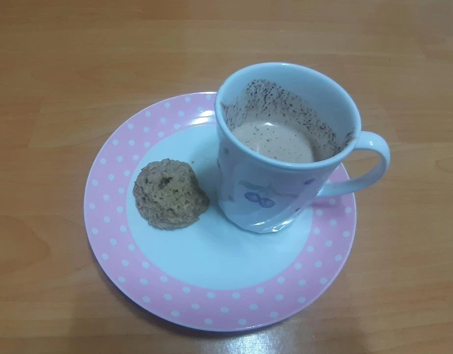 남은 생크림이 아까워 갖고 있던 99% 카카오 초콜릿을 넣어 핫 초콜릿을 만들었어요. 원래는 가나슈 재질을 원했는데, 그렇게는 안 나오더라고요. 그래서 약간의 올리고당을 넣고 핫 초콜릿을 만들어 먹었습니다.