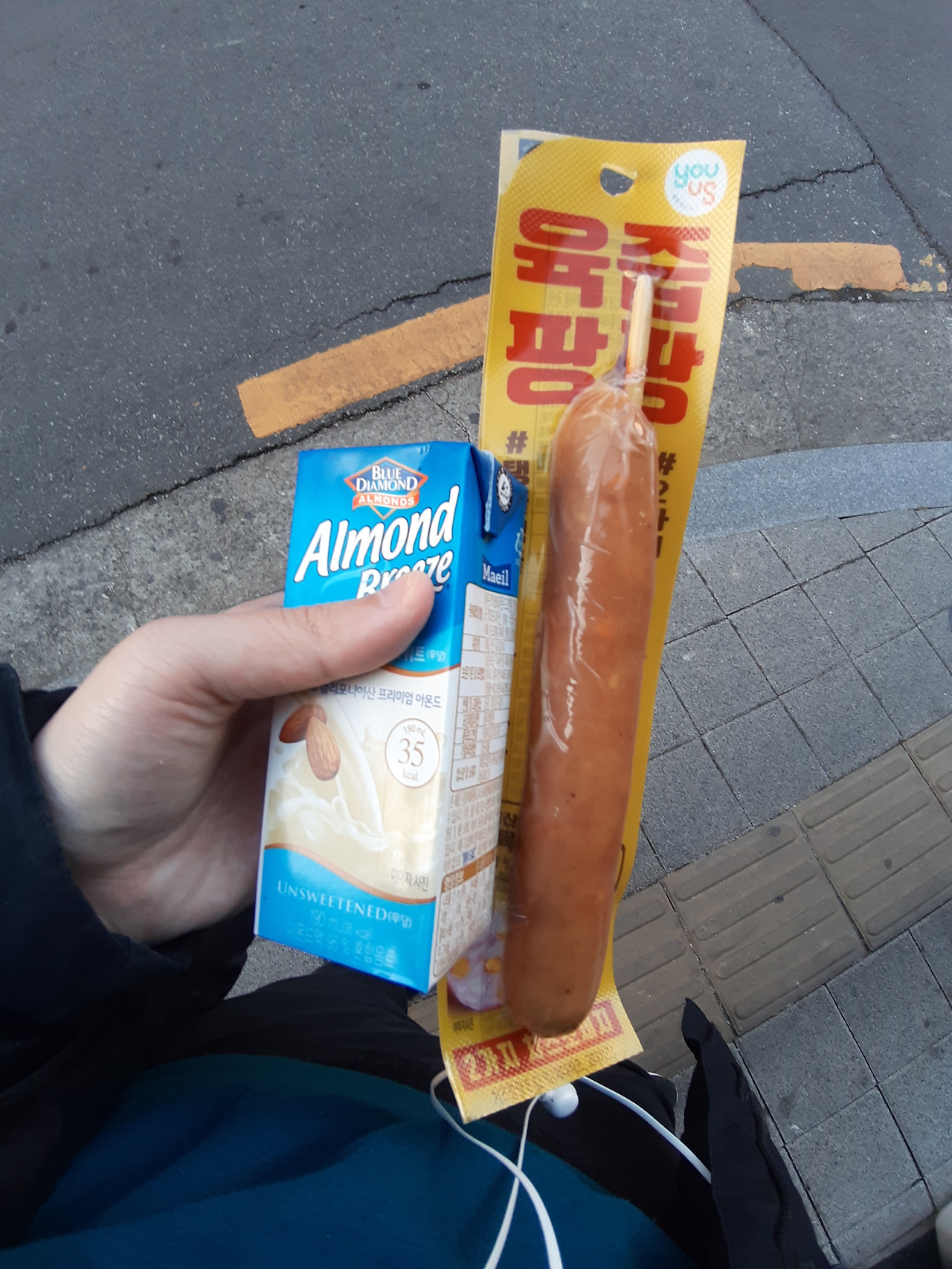 이 날은 아침에 일찍 나가야 해서, GS25에서 아침을 사 먹었습니다. 아몬드 브리즈 언스위트와 육즙 팡팡 소시지 그리고 사진에는 나오지 않았지만 계란 두 알을 먹었습니다. 저녁으로 삼겹살과 부추 조금을 먹었습니다.