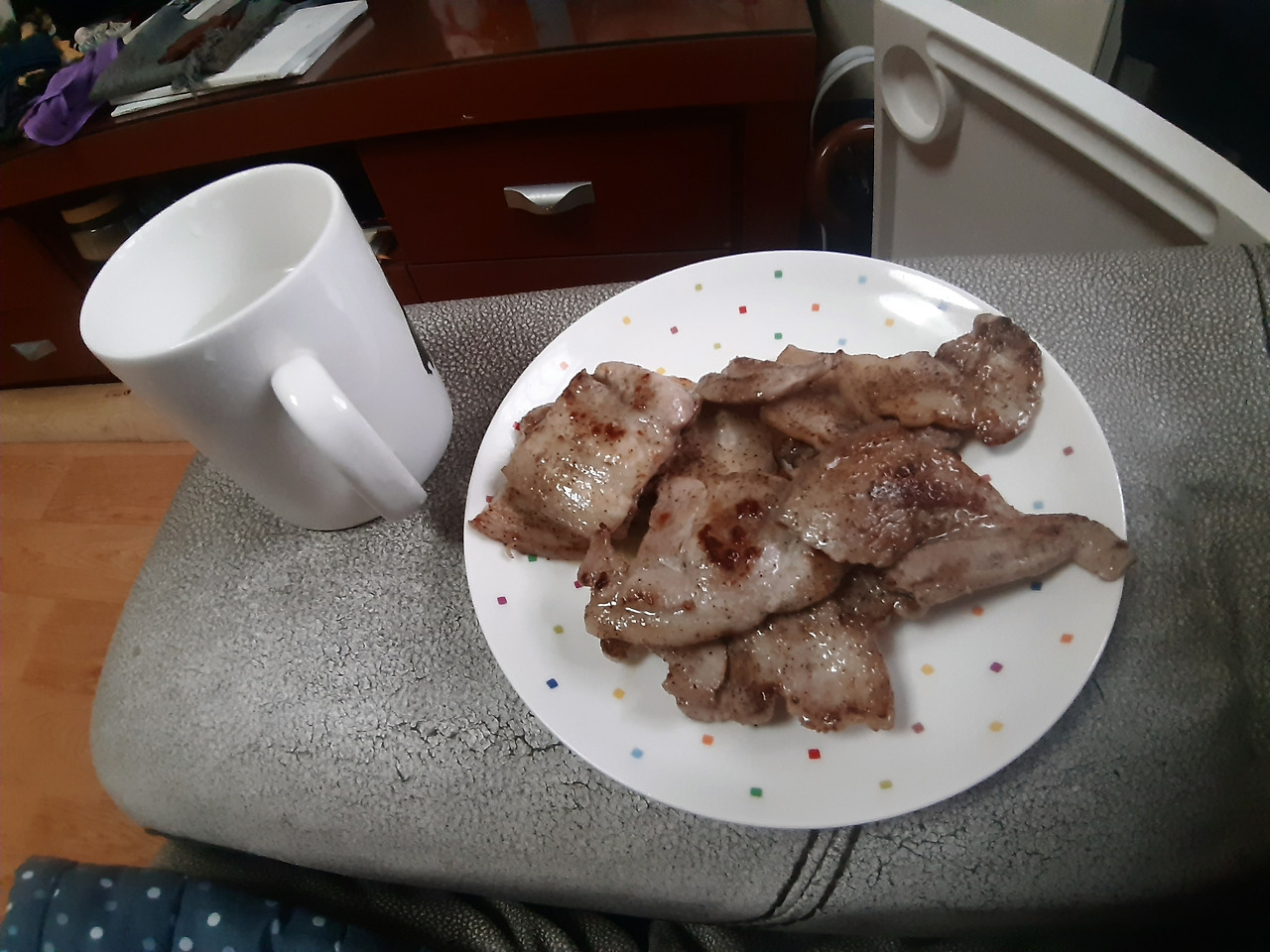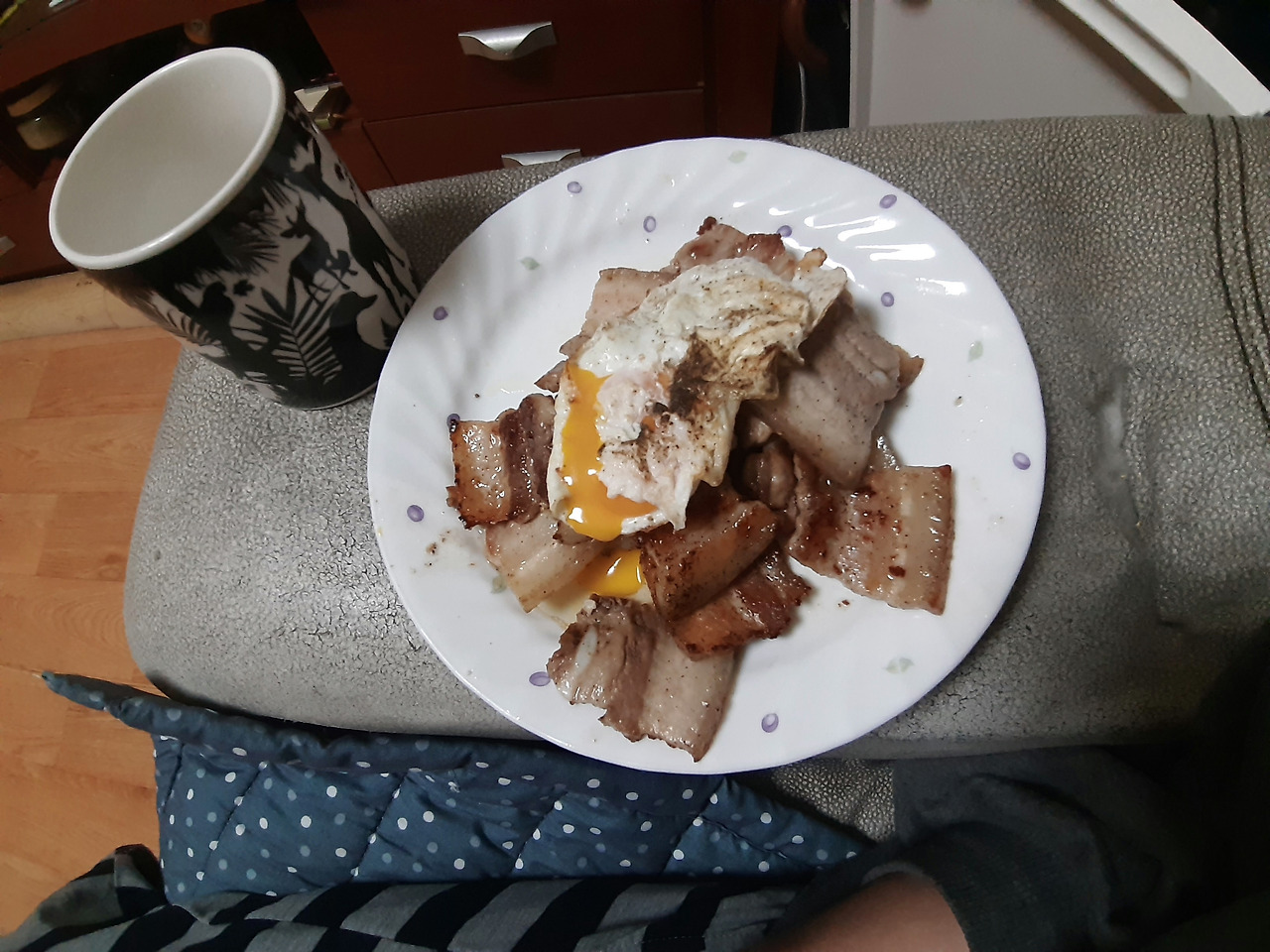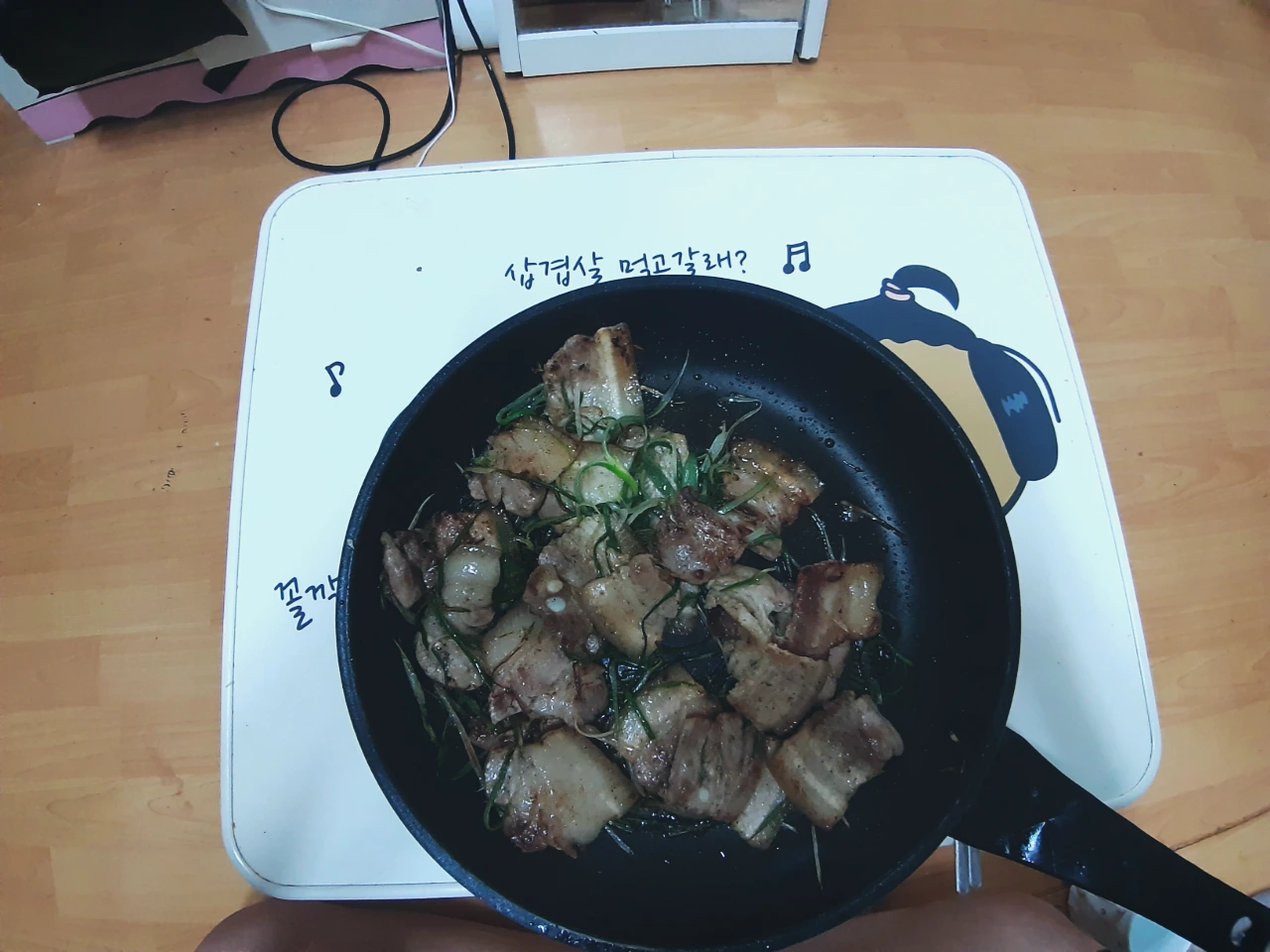 드디어 종강을 맞이했습니다! 아침에 정신없어서 공복이었다가 오후 3시쯤 파리바게트에서 커피 한 잔 마셨습니다.(빵의 유혹이 거대했지만 참아냈어요!) 그 후에 삼겹살과 라드에 볶은 계란 프라이를 먹었습니다.