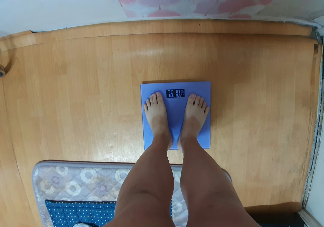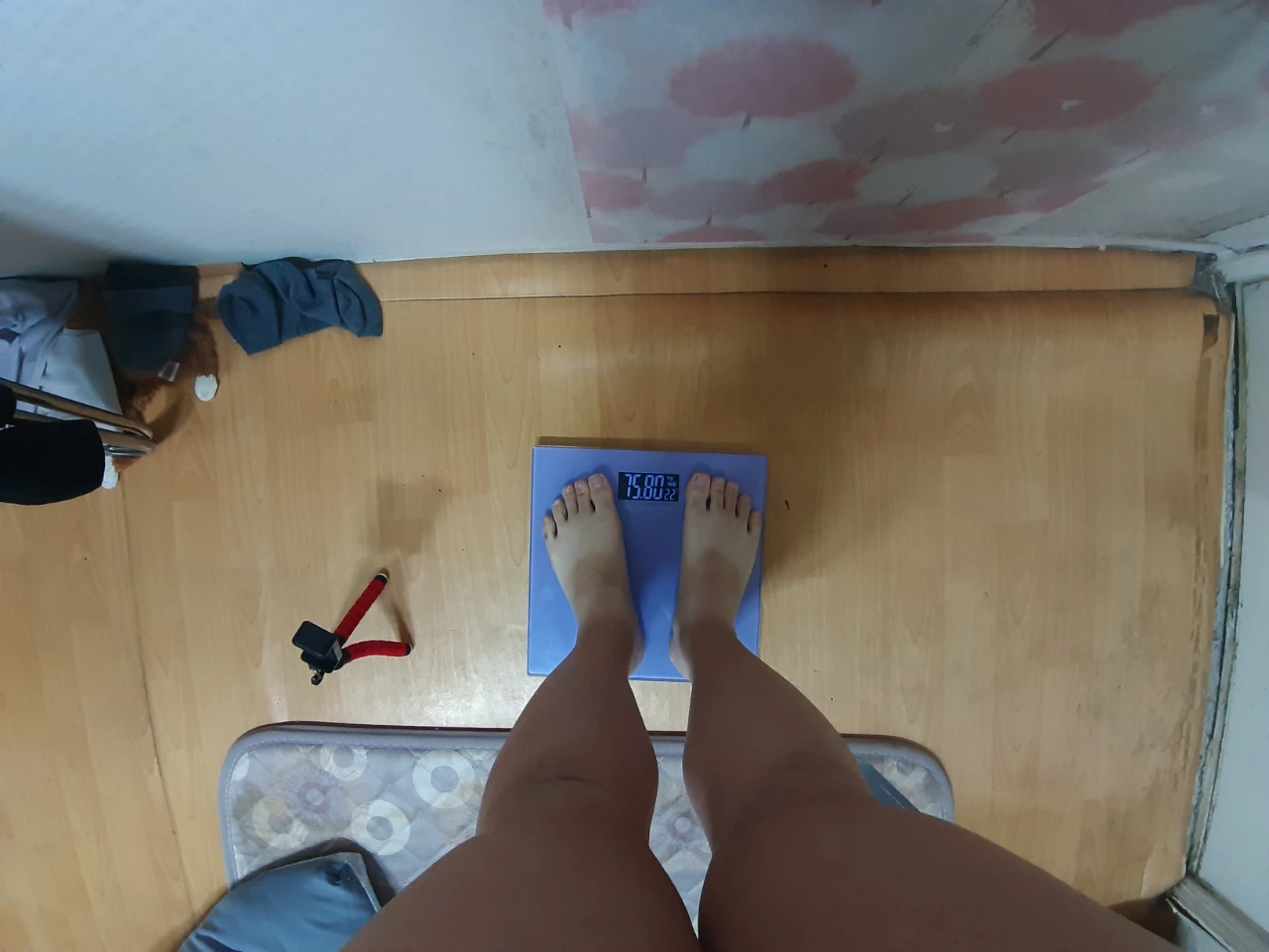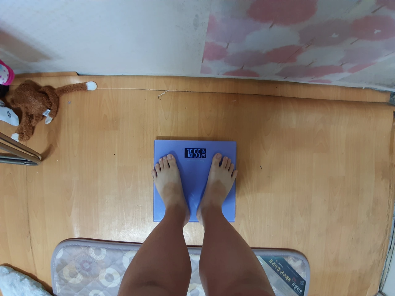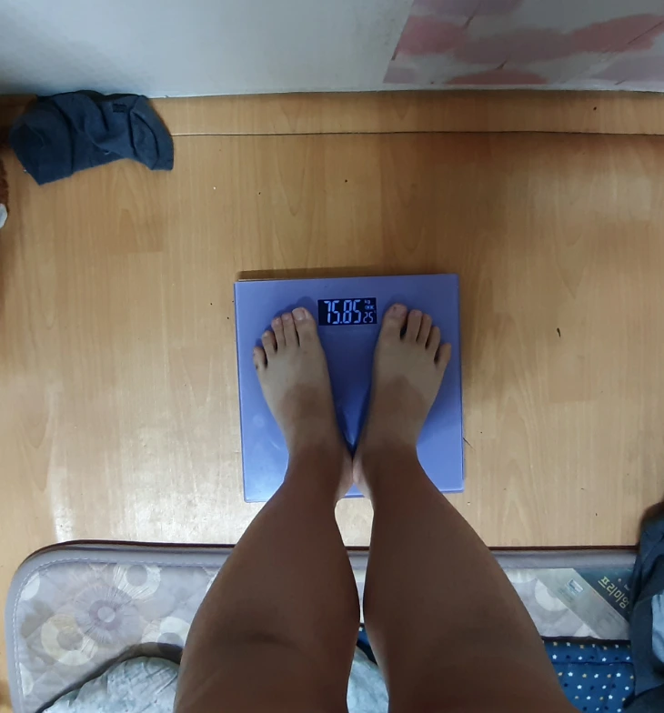 다이어트 시작 전에는 재지 않던 몸무게를 재었습니다.