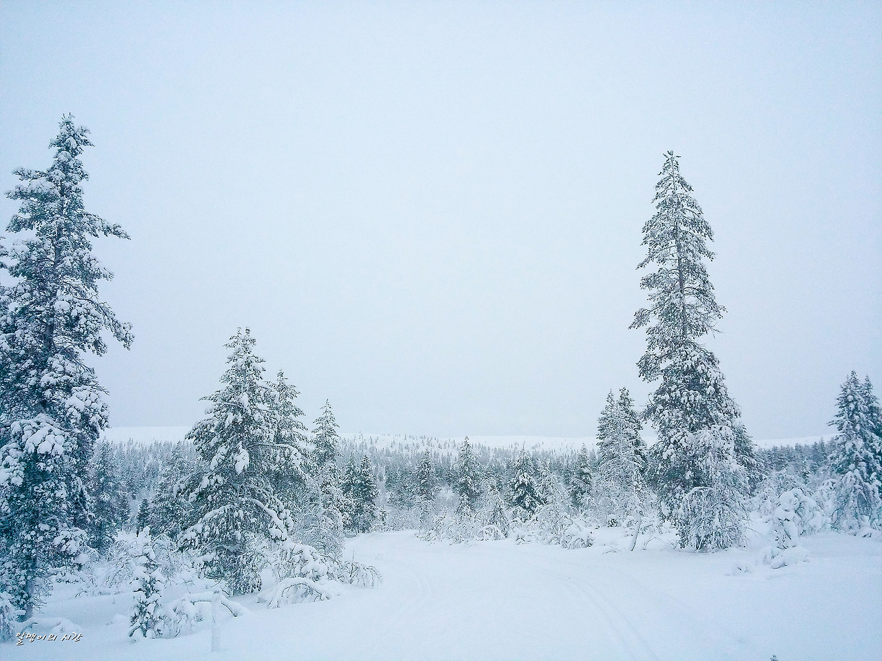 하이킹 장비를 빌려서 국립공원으로 향했다. 눈으로는 그 끝을 확인할 수 없을 만큼 거대한 이 국립공원은 눈 덮인 침엽수림으로 가득 차 있었다. 걷고 있는 이 하이킹 코스는 명색이 하이킹 코스임에도 불구하고, 흐릿한 크로스컨트리 자국 외에는 사람의 흔적조차 찾아볼 수 없었다. 코스 밖으로 조금만 벗어나 발을 헛디디면 허벅지까지 눈에 푹 빠지는, 눈과 침엽수림 말고는 아무것도 없는 곳. 지금 이 곳에 있을 수 있는 게 너무 감사했다.