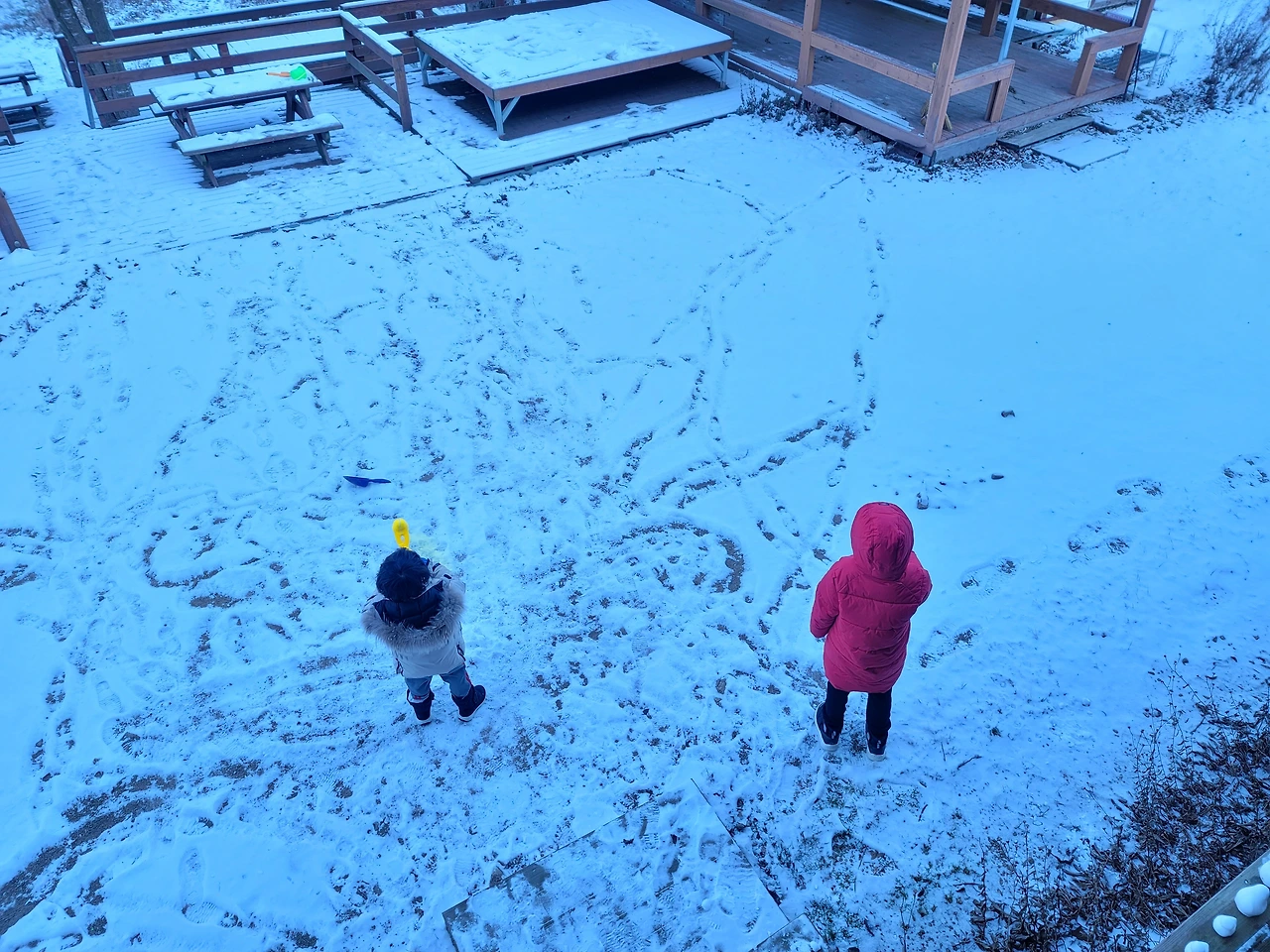 아이들은 성탄 선물로 받은 레고로 온종일 신났고, 5분 정도 숨쉬러 나온 마당에서 눈집게로 오리만들기도 하고, 아들의 최애템 종이접기는 하루종일해도 질리지도 않는 것 같다.