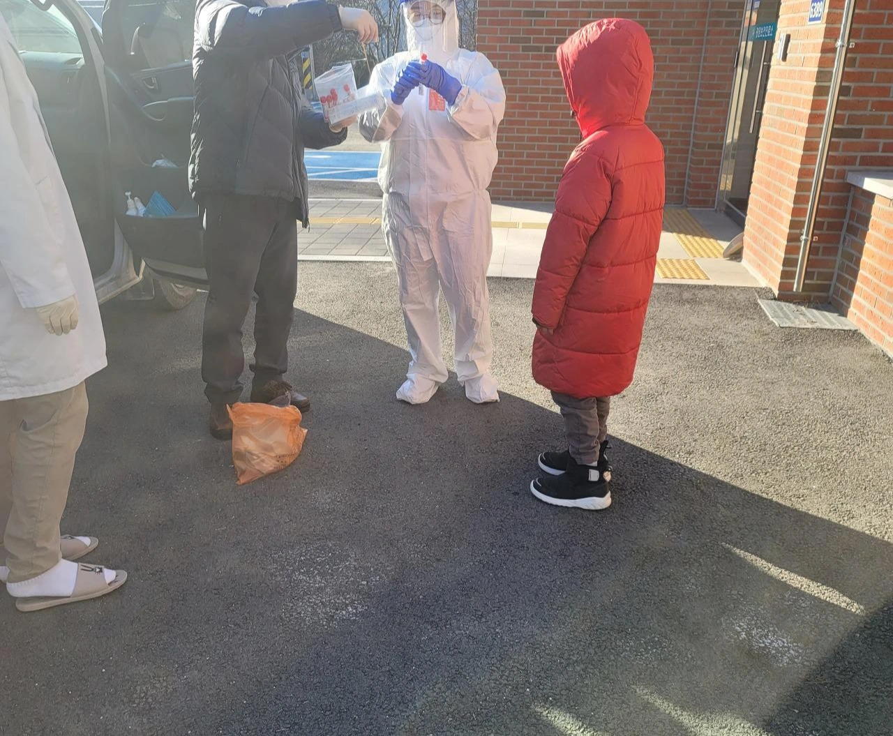 오후가 되어 다행히 시동도 걸리고 보건소까지는 무난하게 갈 수 있었다. 보건소 앞에 세워진 구급차를 보니 감사한 마음이 들었다. 이 추운 날씨에 먼 거리를 마다하지 않고 달려와준 의료진도 감사하고 보건소 내부에서는 검사가 불가하니 보건소 앞마당에서 코로나 검사를 진행했다.