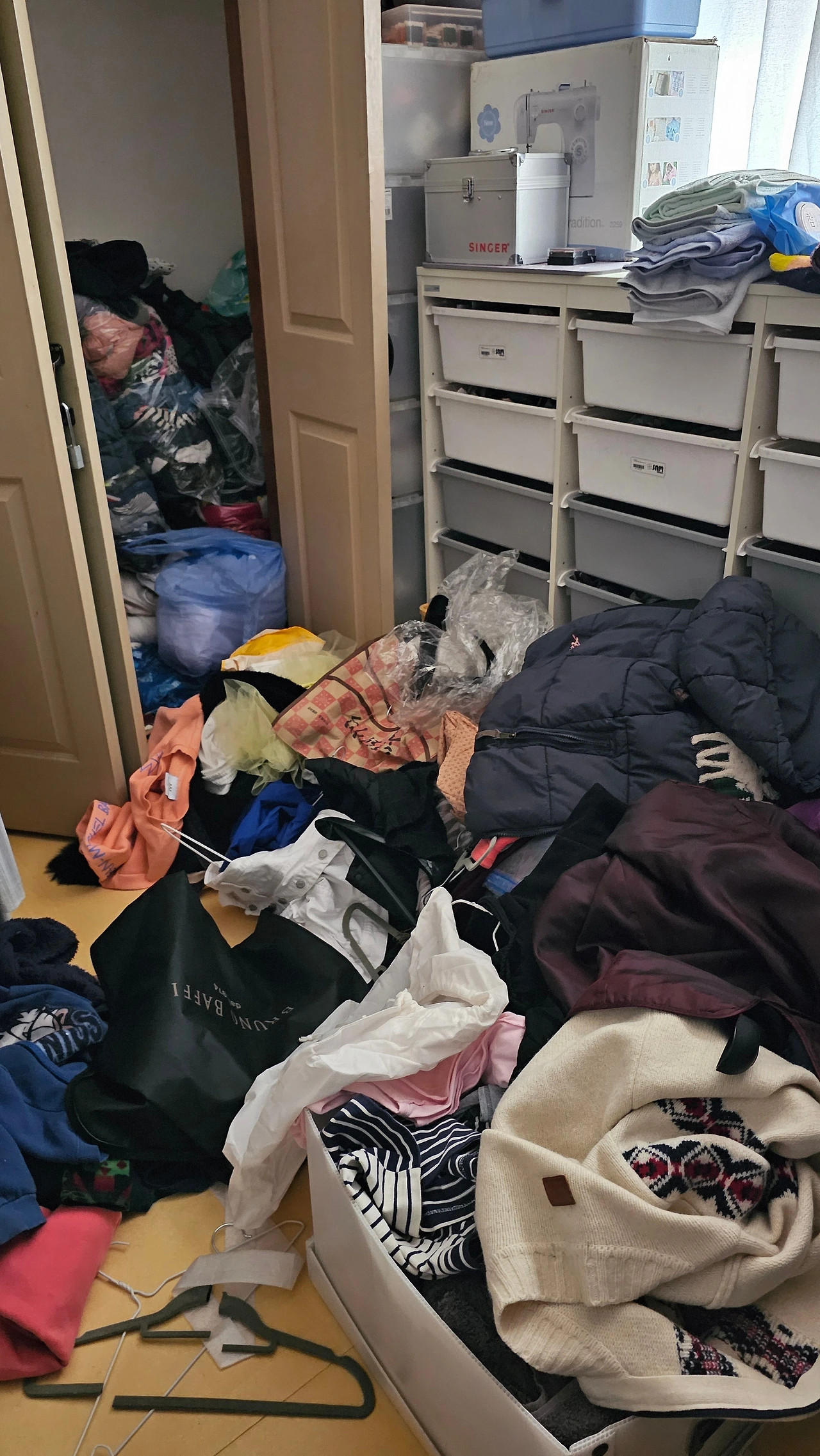 그 많던 옷들이 차곡차곡 자리를 잡아간다. 엄마가 아니었으면 정말 손 놓고 한 달이고 두 달이고 있을 마음상태였는데... 결국 하루 만에 손도 못 델 것 같던 옷방이 정리되었다.