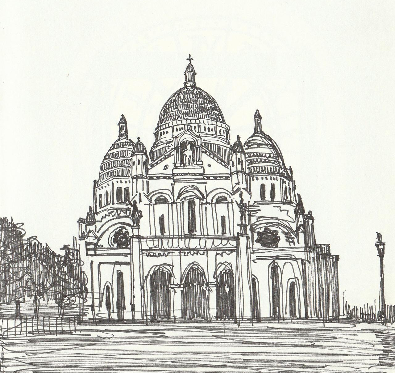 뒤쪽에 웅장하게 보이는 사크라 쾨르 대성당을 다시 바라보고 우리는 올라왔던 길의 반대 방향으로 언덕을 내려왔다. 비도 내리고 관광객들도 많지 않아서 그런지 기념품 상점 들고 문을 하나 둘 닫고 있었다. 빗방울이 더 굵어져 잠시 쉬어가기 위해 근처 카페테라스에 앉아 맥주 한잔을 마시며 주위의 분위기를 다시 둘러보니 우리처럼 자유롭게 카페테라스나 내부에 앉아서 이야기를 나누며 즐기는 사람들이 보였다. 지나가는 차바퀴가 젖은 노면 위를 지나갈 때 나느 소음도 좋았고 옆 건물 지하에서는 알 수 없는 밴드의 라이브 음악이 흘러나오면서 알 수 없는 편안함이 느껴졌다.
