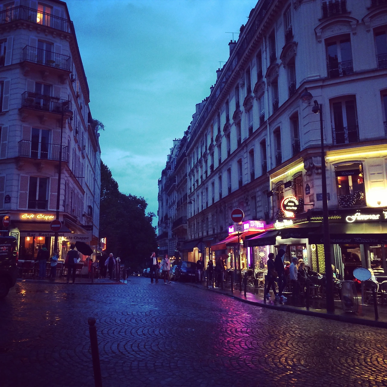 몽마르뜨 언덕에 도착할 때 즈음 다시 비가 내리기 시작했다. 첫날 도착했을 때 내리던 비의 느낌과는 너무나 다르게 다가왔다. 비가 내려 살짝 젖을 도로 위로 카페들의 네온사인이 비추면서 마치 몽환의 세계로 향하는 길을 걷고 있는 듯한 느낌을 받았다. GPS를 따라 언덕 정상으로 올라가면서 빗방울이 조금씩 굵어지기 시작했고 그리 길지 않은 시간이 지나 언덕 정상에 올랐다. 사크라 쾨르 대성당에 들어가서 잠시 비를 피하며 주위를 둘러본 후 다시 밖으로 나왔다. 성당 아래로 내려다 보이는 비 내리는 파리의 전경은 너무나 아름다웠다. 상점에서 구입한 작은 와인 2병을 마시면서 쓰고 있던 우산을 내려놓고 비를 맞았다. 결국 비바람이 불어 쓰고 있던 우산도 망가졌지만 적당히 좋고 적당히 우울하고 적당히 파리의 분위기를 느낄 수 있었다.