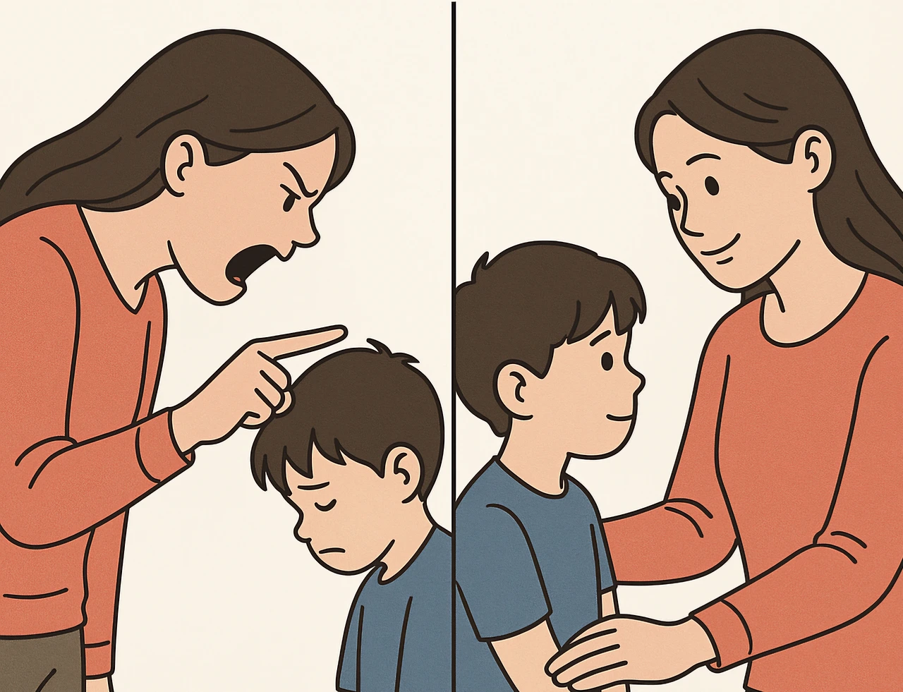 아이의 행동으로 인해 불편해진 마음과 행동의 결과에 대해서, 언어적 비언어적으로 일치할 수 있게 표현해 줘야 아이는 자신의 행동을 돌아볼 수 있다. 그런데 말은 아주 부드럽게 괜찮다고 하는데 표정은 굳어있거나 눈빛에서 레이저가 나온다면 아이는 어떤 신호를 인식해야 할지 혼란스럽고, 결국 자신의 내면의 소리 또한 알아차리지 못하는 아이가 될 수 있다.
