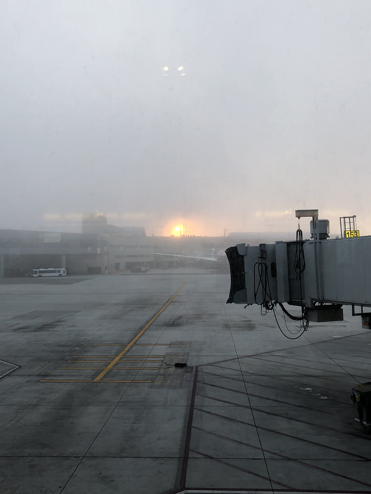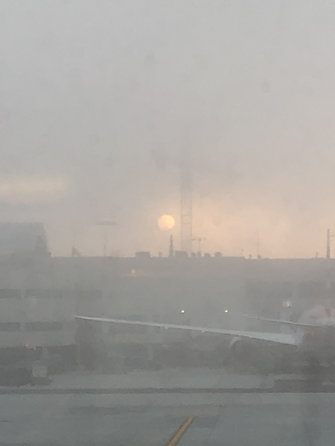 잠을 제대로 못 자서 짜증이 한 바가지에 완전 예민 덩어리로 변해버렸지만, 이것 한 가지 때문에 열 시간이 넘는 대기 시간의 피로감이 순식간에 녹아내렸다. 그것은 바로 공항에서 맞이하는 일출이었다. 동이 틀 무렵, 아침 안개가 자욱하게 공항을 감싸 안고 있었다. 주위가 점점 밝아지고 있지만, 여전히 자욱한 파란 아침 안개 때문에 공항이 공상 과학 소설 속에서 등장할 법한 미래 도시 같았다. 파란 아침 안개가 연 회색빛 안개로, 그러다 흰색에 가까운 하얀 잿빛 회색으로 차츰 변하더니 빨간 해가 저 멀리서 보이기 시작했다. 비행기와 게이트에서 '퐁' 올라오는 해의 모습은 정말 아름다웠다. 이런 일출을 언제 또 볼 수 있을까? 자욱한 안개는 학교라는 따뜻한 울타리를 벗어나 한 치 앞을 알 수 없는 정글 같은 사회 속으로 들어가고 있는 나의 모습, 떠오르는 해는 희망을 잃지 말라고 말하고 있는 것 같았다. 불안정한 나의 미래에게 따뜻한 위로와 격려를 건네주는 일출. 마음 저 깊은 곳에 잔잔한 감동이 밀려왔다.