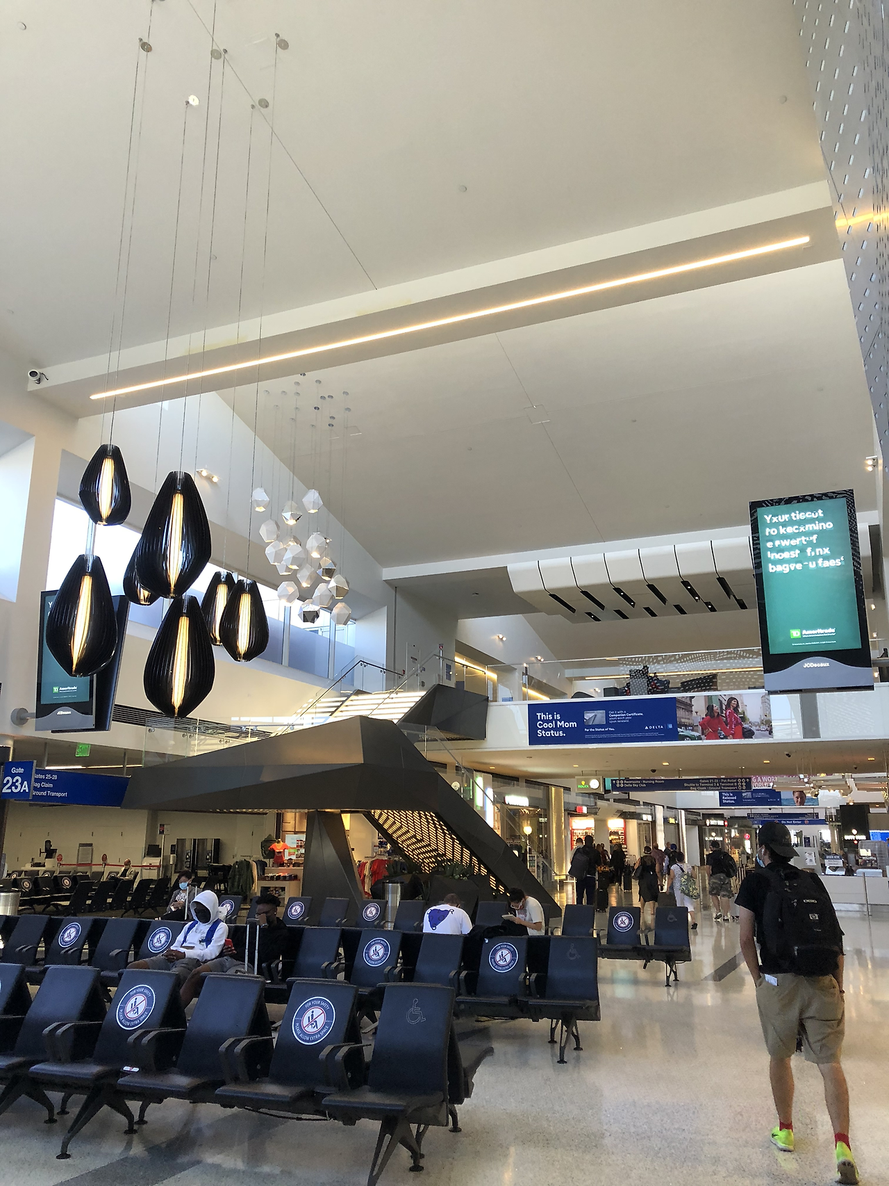 국제선 터미널에 도착하니 국내선 터미널과는 달리 90% 이상의 가게들의 문이 닫혀있었다. 한산하다 못해 스산했지만, 인테리어가 정말 예술이었다. Los Angeles가 '천사들'이란 뜻인데, 도시의 이름을 잘 표현한 공간이란 생각이 들 정도였다. 제 역할을 다 하지 못하고 있는 이 아름다운 공간을 보니 마음이 아려오다 못해 슬퍼졌다. 긴긴밤을 어떻게 공항에서 지새워야 하나 막막할 법도 할 텐데, 사실 그렇지 않았다. 오히려 머리가 맑아지면서 베이스캠프의 적당한 곳이 어딘지 물색하기 시작했다.