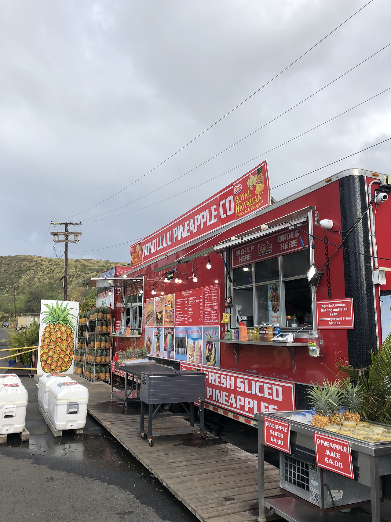 3. 하산을 하면 파인애플 주스 파는 곳이 눈에 띈다. 병에 파는 주스가 아니고 정말 파인애플에 빨대를 꽂아서 팔았다. 땀 흘리고 난 뒤에 마시는 과일 주스는 꿀맛이고, 나도 잠시간 머무는 대학원생이 아닌 찰나의 순간이지만 관광객이 된 것 같아 기분이 더 좋았다.
