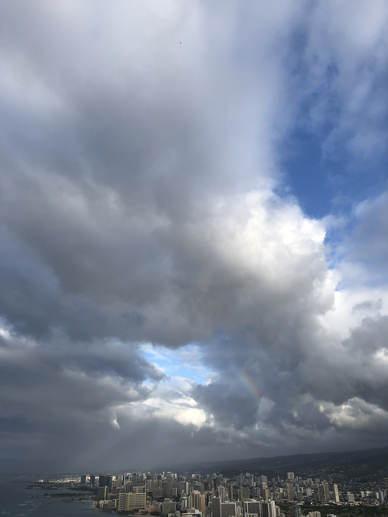 주차장에서 내리면 하이킹 시작이다. 남녀노소 다 '가볍게' 도전해볼 수 있는 코스로 소문이 나 있었는데, 마지막 99계단 코스만 뺀다면 정말 무난한 코스였다. 계단도 보기에만 어마 무시하지 막상 오르기 시작하면 금방 끝나버려서 오랜 시간이 지난 지금도 무난한 하이킹 코스로 기억되고 있다. 동생과 올라갔을 땐 이쁘게 화창하던 일출을 볼 수 있었고, 대학교 후배와 갔을 땐 조금 특별한 일출을 볼 수 있었다. 비가 올 것 같이 흐린 와중에 해는 떠 오르고 있고, 오아후 도심이 보이는 부분에는 잿빛 구름 사이로 무지개 한 조각이 떠 있었다. 높은 곳에서 부는 바람을 무서워하는 편인데, 무서움도 잊고 하염없이 그 무지개 조각을 바라봤다. 정말 아름다웠다. 왠지 와이키키 해변에 아일랜드에서 휴가 온 레프러칸(레프러콘, Leprechaun) ² 요정이 휴가 온 기념으로 무지개 조각을 만들고 있을 것 같기도 했다. 하산 ³하기 직전 무지개 조각을 보며 무사히 마지막 학기를 잘 마무리할 수 있도록 도와달라는 소원을 빌고 내려갔다.