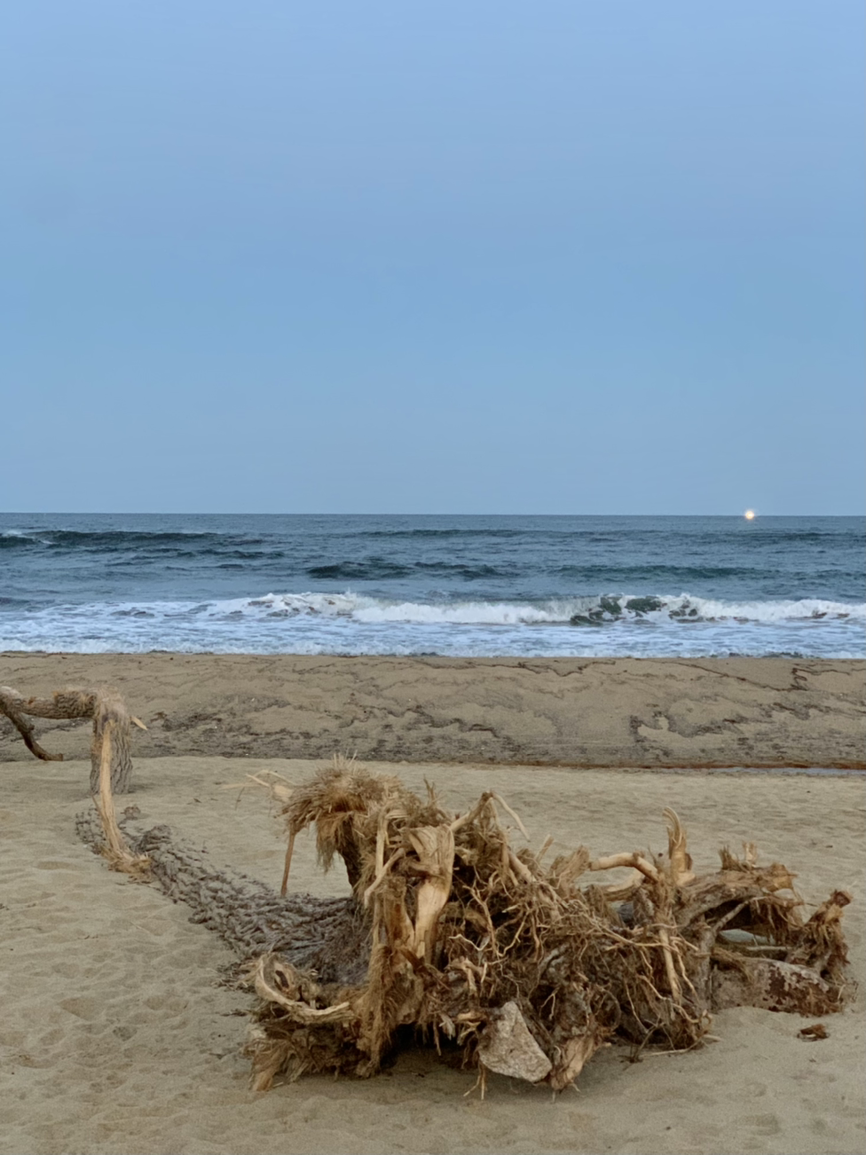 뿌리째 뽑혀 해변까지 떠내려온 나무