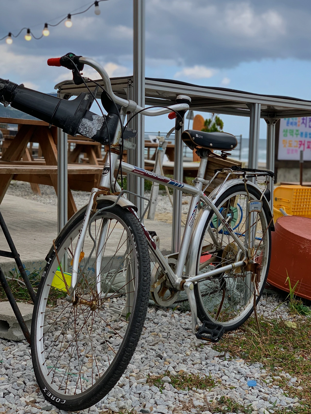 까치발을 들어야 발이 땅에 겨우 닿는 높은 안장. 브레이크 역할을 해주는 중요한 부분에 녹이 슬어있다. 안장을 조이는 버튼에도 녹이 슬어 꿈쩍을 안 한다. 영락없이 까치발 신세다. 1단부터 5단까지 기아 조절도 가능한데, 부품이 떨어져 나갔다. 뭐 하나 정상인 게 없어 보인다. 조금 달려봤다. 바퀴는 탱탱하고 브레이크는 잘 든다. 그래. 이거면 됐다. 발이 생긴 걸로도 충분히 기쁘다.