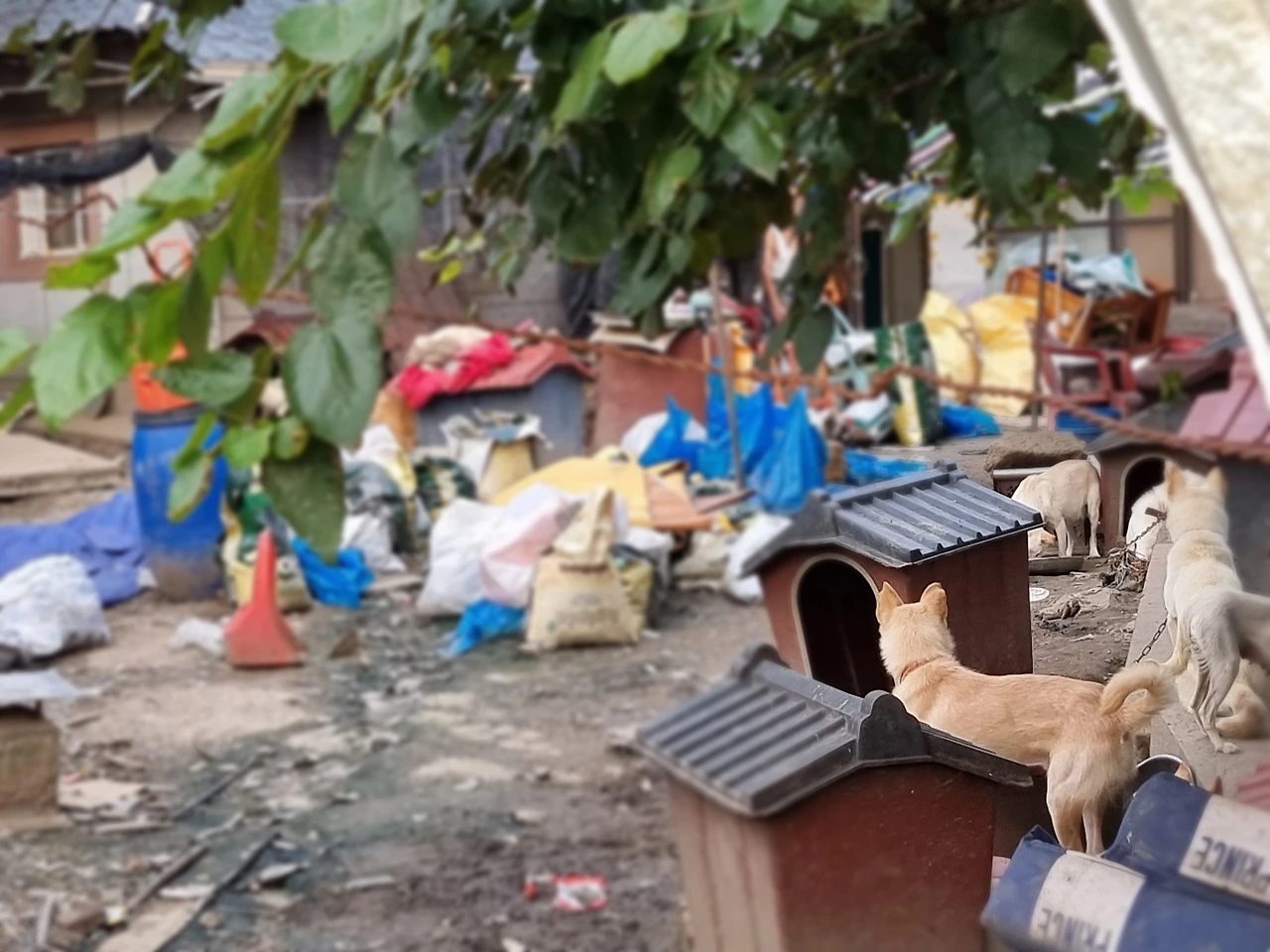 담장 너머로 널브러진 비료포대와 쓰레기가 나뒹구는 그 집에 할머니와 개 70마리가 살고 있다. 주소를 검색하니 유기견 보호소 OOOO쉼터라는 비공식 명칭이 따라붙는다. 보호받는다고 하기엔 개들의 주거환경이 상당히 열악해 보인다.