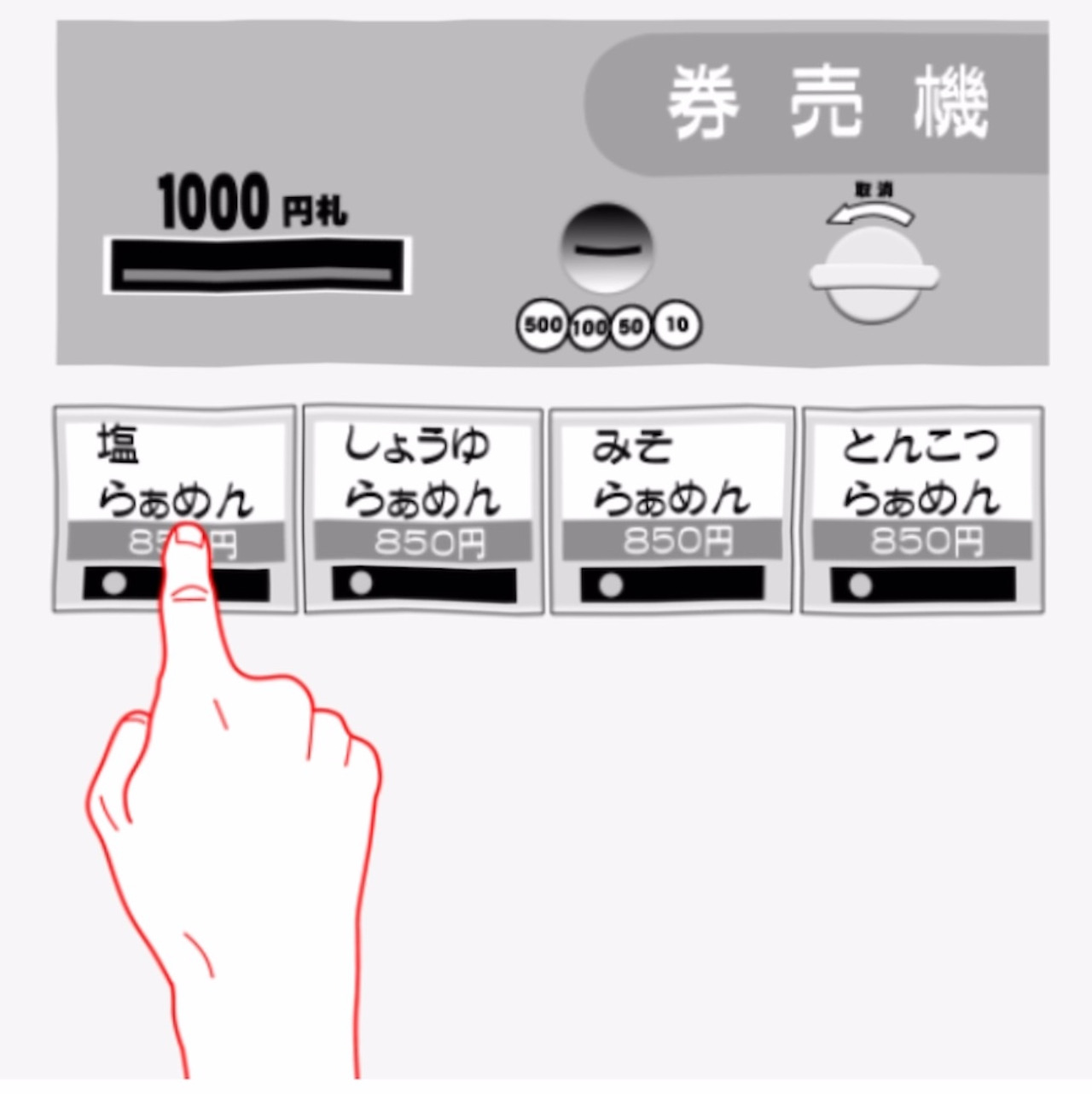 가게 안에 들어가서 무인발권기로 라면을 주문해야 하는데요.