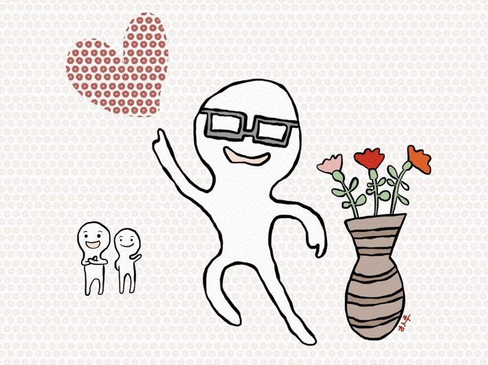 식탁에 웬 장미꽃 한 송이가 작은 화병에 꽂혀있다. 이리 둬봤다가 저리 둬봤다가 어디가 더 예쁠까? 한껏 들뜬 엄마 옆에 웃으며 서 있는 남자. 웬 장미냐 물으니 아침 산책하고 돌아오는 길에 마당에 떨어져 있다 했다. 그날 아침, 꽃 한 송이로 밥상은 화기애애했다.