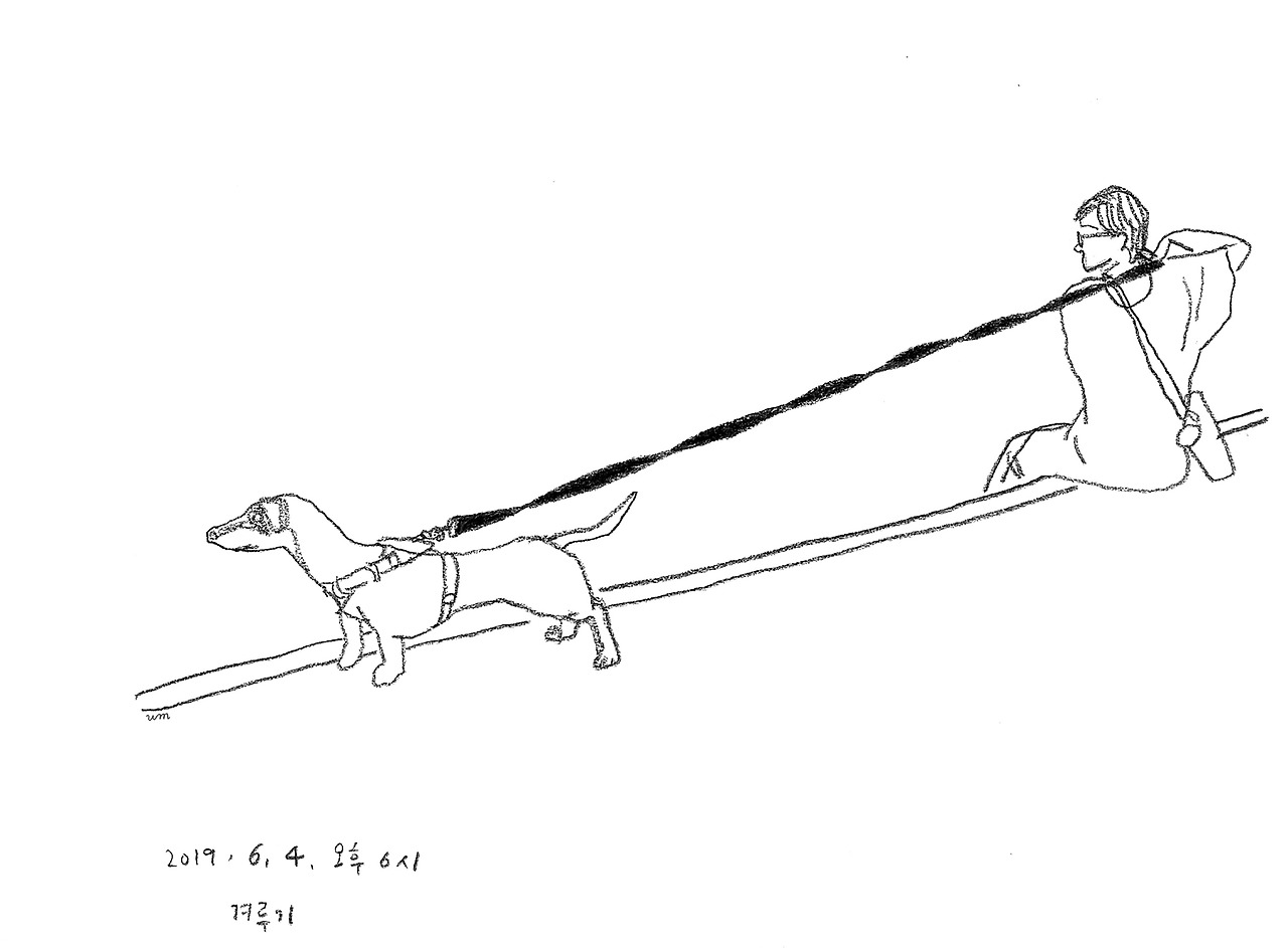 불광천에 나가면 온갖 종류의 개들을 볼 수 있다. 말티즈, 푸들, 웰시코기, 닥스훈트, 치와와 … 가끔 진돗개나 골든 리트리버 같이 큰 개가 지나가기도 한다. 개들은 마주칠 때마다 서로의 냄새를 맡는다. 은근슬쩍 서로에게 다가가 친근함을 표하거나 뭐가 마음에 안 드는지 앙칼지게 짖어대는 녀석들도 있다. 주로 소리치는 쪽은 덩치가 작은 개들이다. 하룻강아지의 객기 혹은 불안함의 표시이다. 그러면 주인은 목줄을 꽉 붙들고 야단을 친다. 앙! 앙앙!! 야! 앙앙앙!!! 쓰읍-!